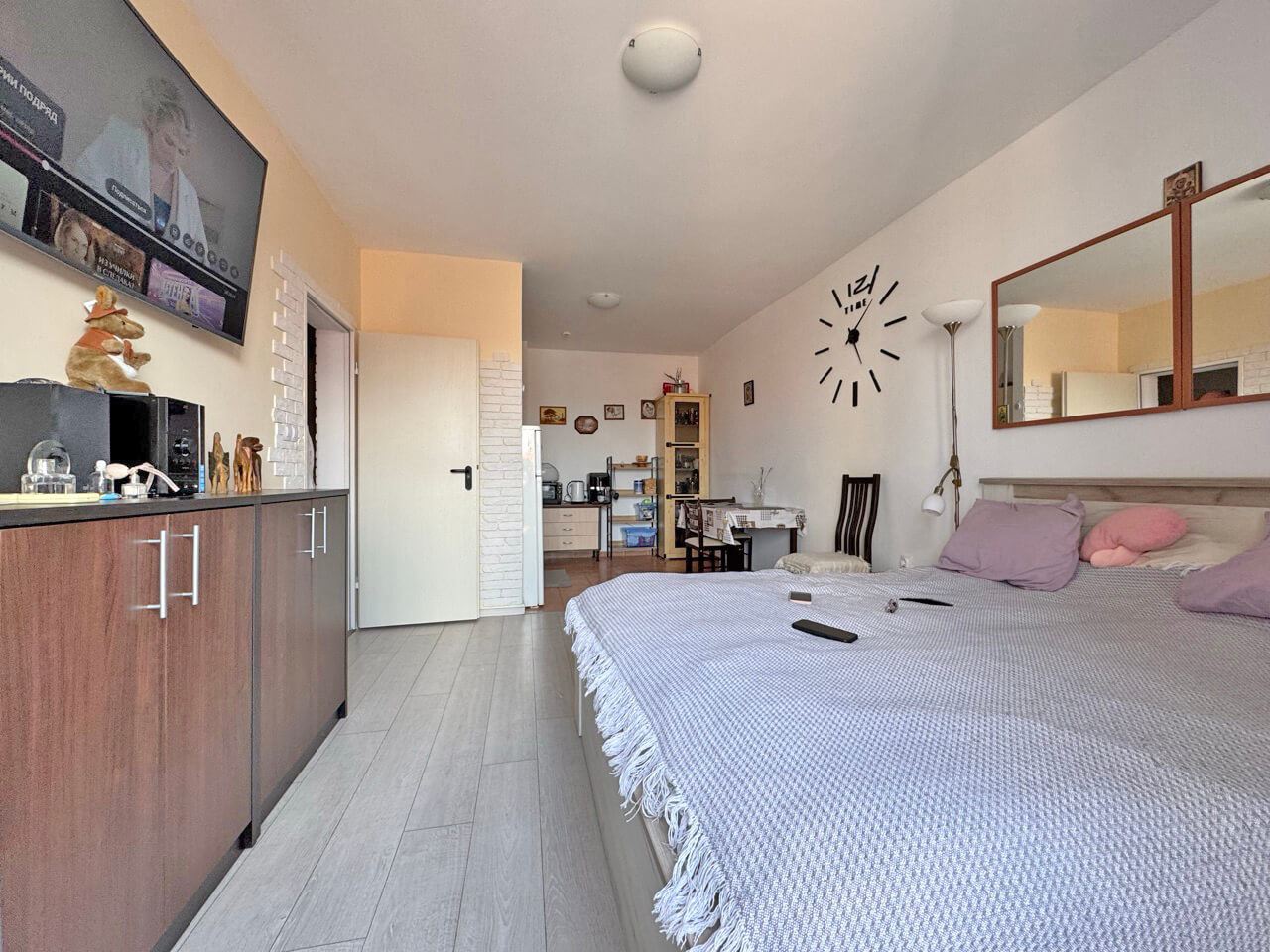 Представяме ви за продажба прекрасно студио, разположено в живописния морски град Ахелой. С обща площ от 42 м2, този имот е идеален както за постоянно живеене, така и за сезонна почивка. Студиото предлага функционално разпределение с една просторна стая, която осигурява достатъчно място за комфортна дневна и спална зона. Разполага с балкон, от който се разкрива великолепна гледка към басейна на комплекса – идеално място за сутрешното ви кафе или вечерен отдих на свеж въздух. Банята е стилно обзаведена и напълно оборудвана.