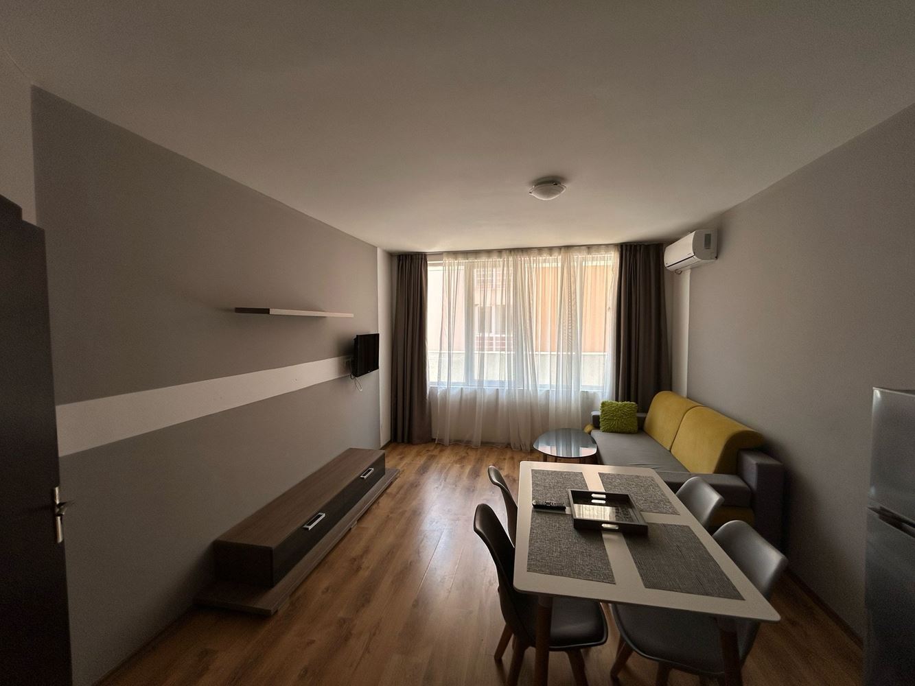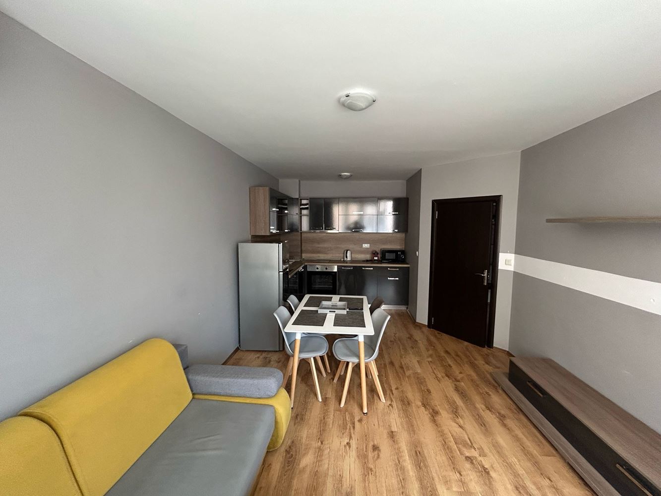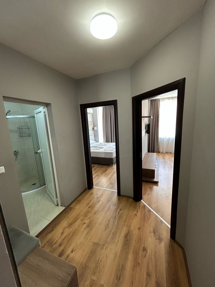 Апартаментът е с удобна разпределена площ от 61 м2 и предлага комфортно и функционално жилищно пространство. Западното изложение гарантира светлина и уют през целия ден. Разпределението включва просторна всекидневна с кухня и трапезария, която е обзаведена и готова за ползване, една комфортна спалня, която ще бъде вашето тихо убежище, баня с тоалетна и балкон, от който можете да се насладите на свежия въздух и гледка. Имотът е напълно обзаведен с вкус и предлага всички необходими удобства за дълготраен комфорт и наслада.