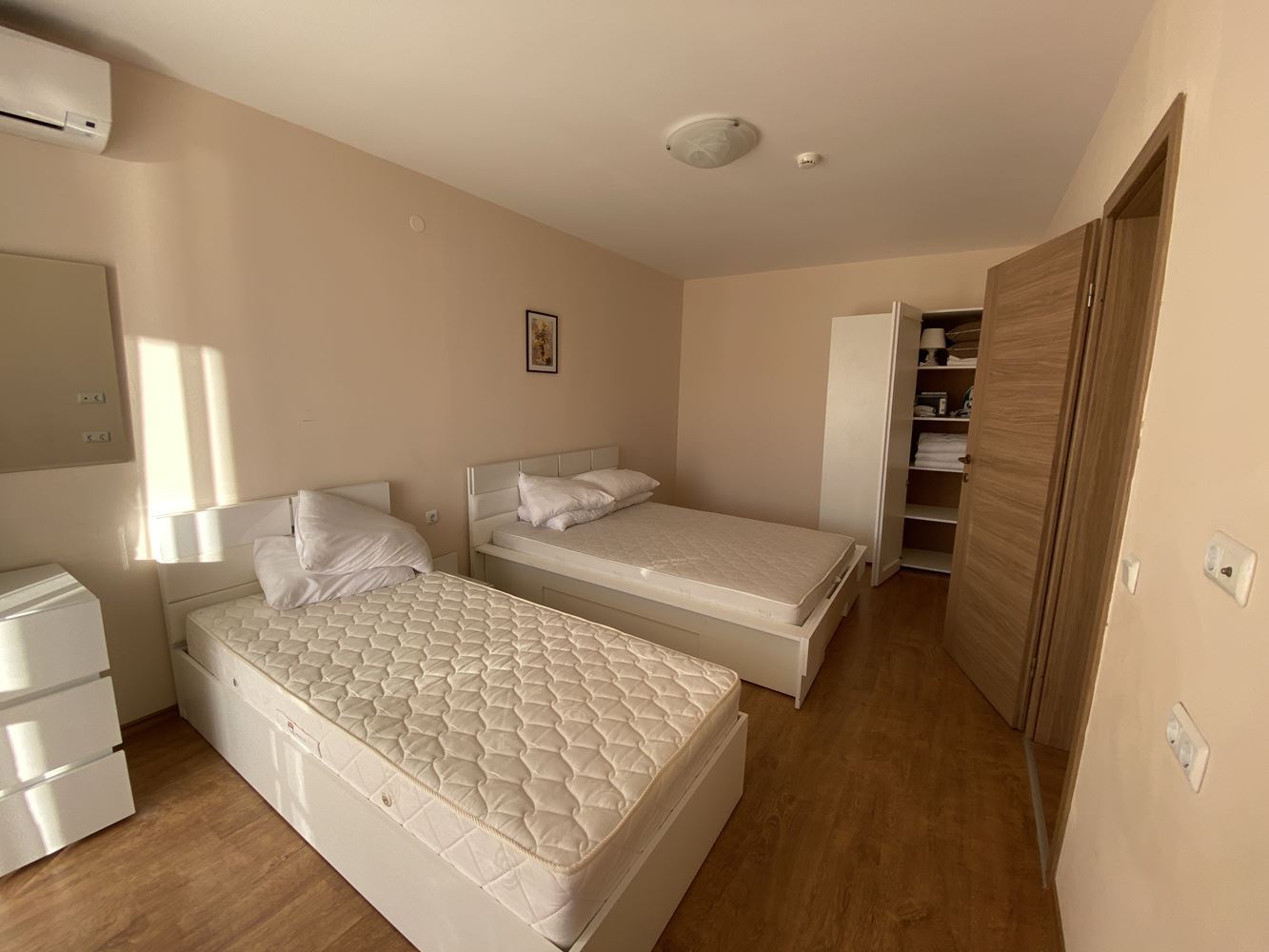 Четиристаен апартамент с директна гледка море в комплекс на първа линия в Свети Влас. Апартаментът е с площ от 150,41 кв. м. на втори етаж. Състои се от антре, всекидневна с кухненски бокс, три спални, две бани с WC и три тераси. Продава се напълно обзаведен. Комплексът се намира на първа линия от морето. Удобства: множество басейни и детски басейни, детски площадки, два ресторанта, магазини, фитнес, Спа салон, медицински център, паркинг, рецепция, охрана.