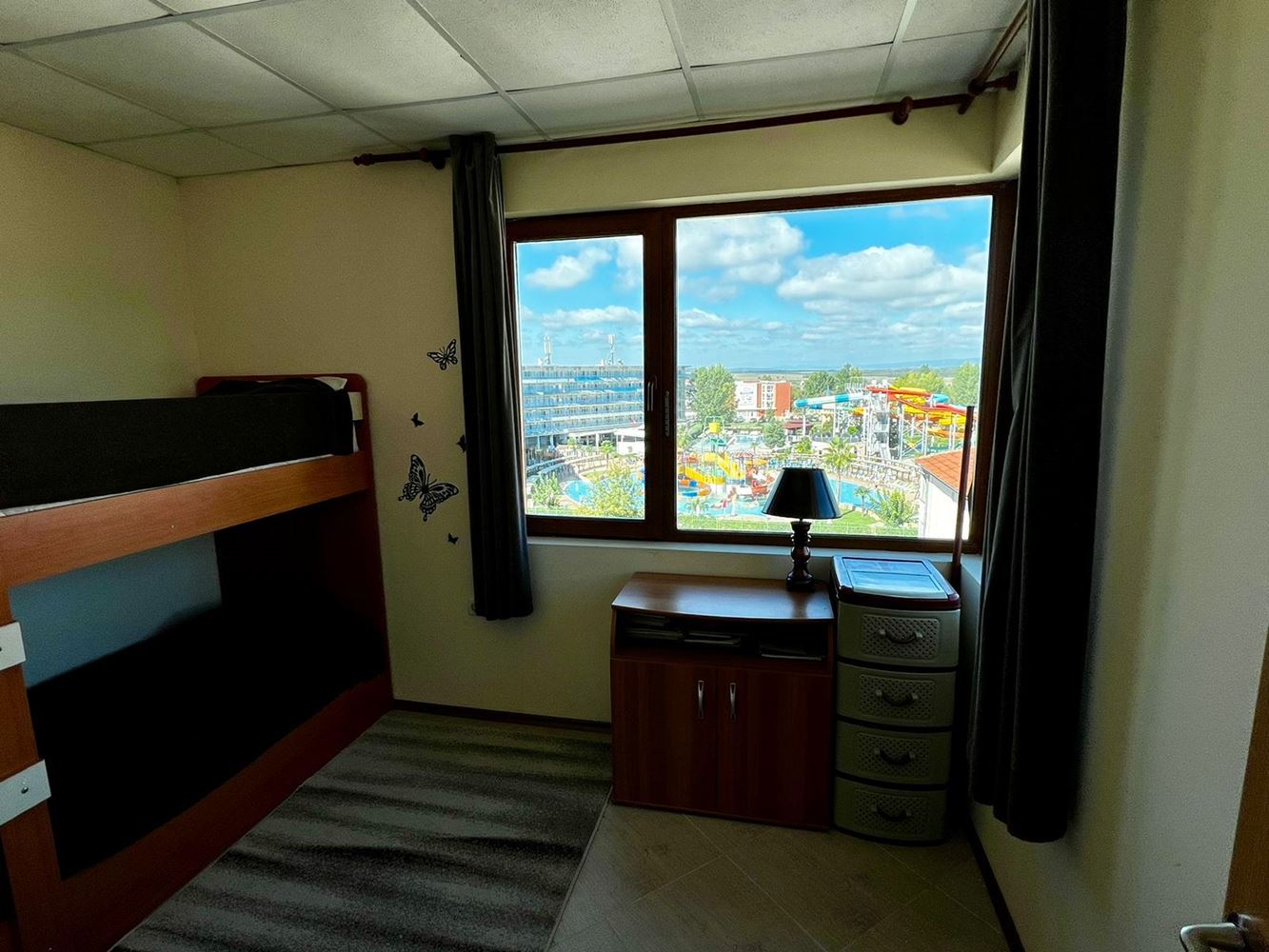 Уютен апартамент с две спални в жилищен комплекс в Слънчев бряг, район на идеалния център. Тук има богата инфраструктура, има много магазини, пазарчета, ресторанти и кафенета за всеки вкус, автобусни спирки. Голям супермаркет, работещ целогодишно, се намира само на стотина метра от апартамента. Общата площ на апартамента е 77 м2, разположен на шестия етаж. В сградата има асансьор. Жилището се състои от входно антре, дневна с кухня, спалня, баня с тоалетна и балкон. Комплексът е разположен в озеленен район с благоустроена територия, плувен басейн, зона за слънчеви бани и отдих, детска площадка. На разположение на гостите са фоайе, рецепция, ресторант, открит бар, открит паркинг. На приземния етаж има магазини. Комплексът е затворен и се охранява постоянно. При желание е възможно апартаментът да бъде отдаден под наем.