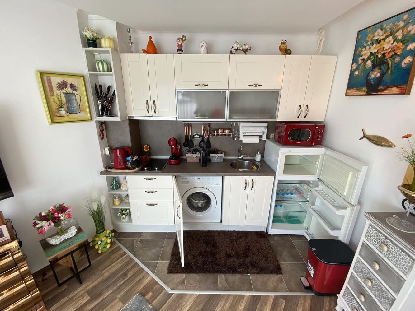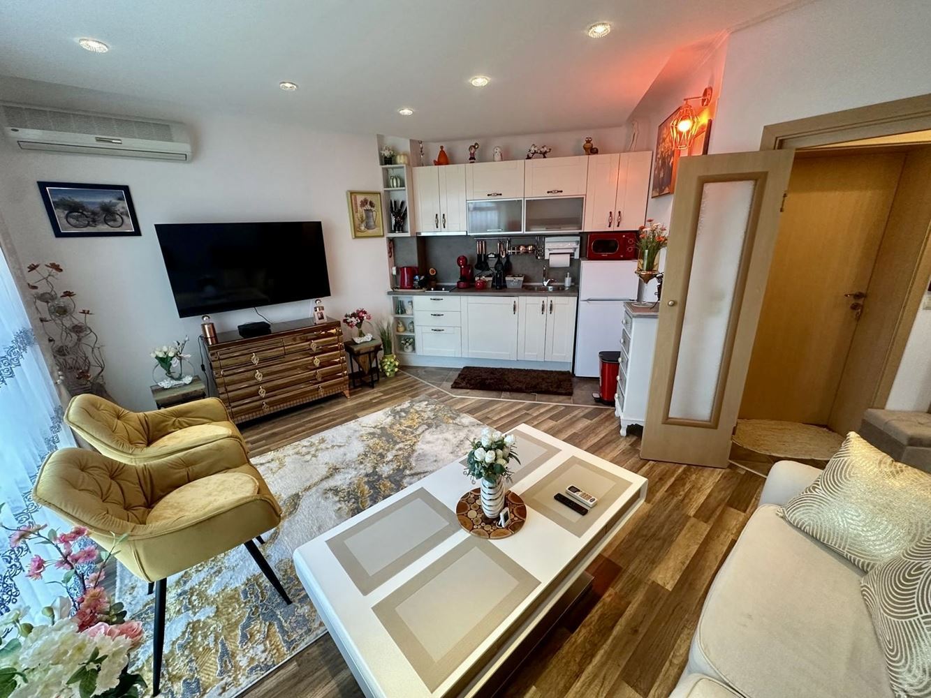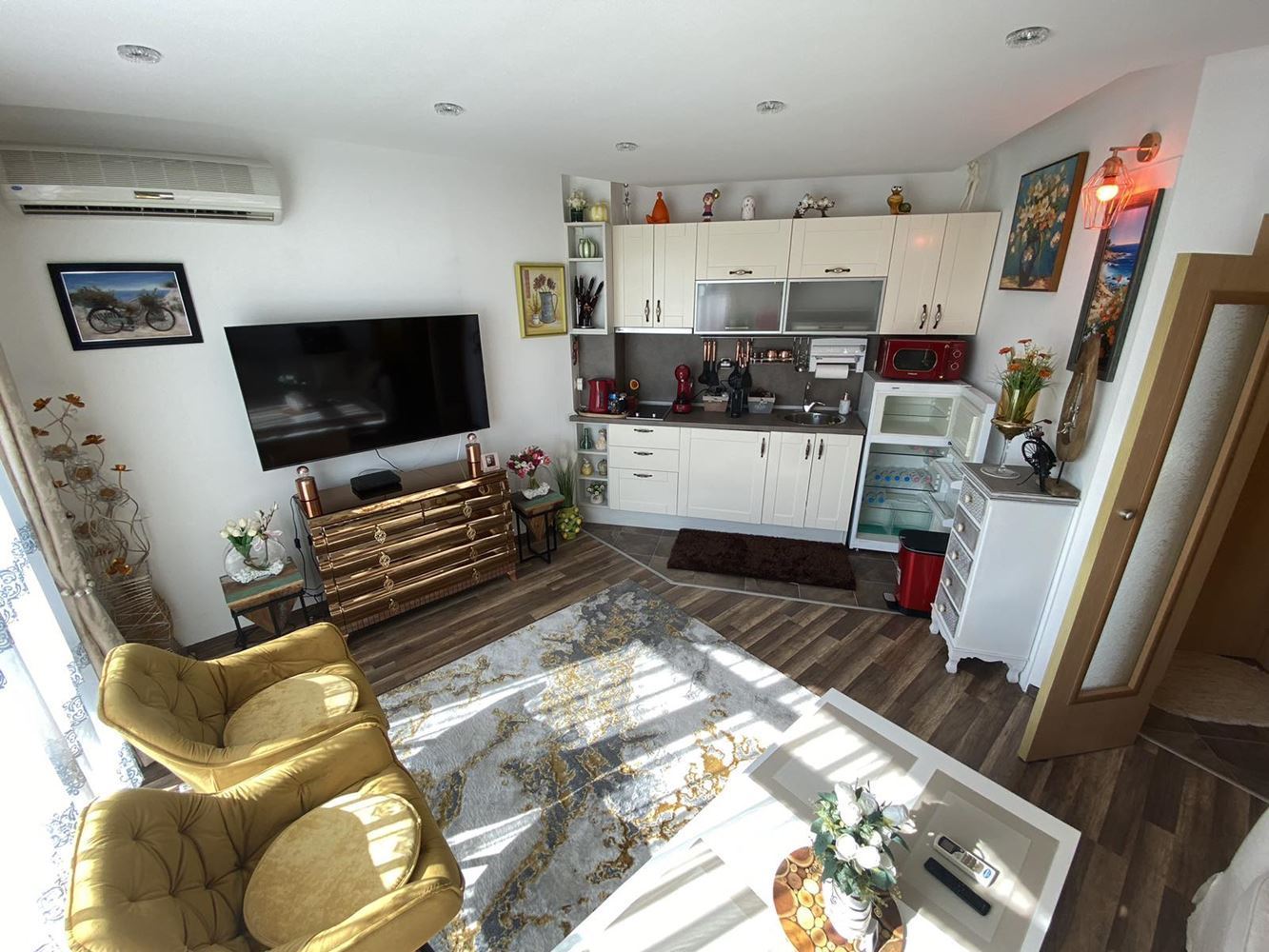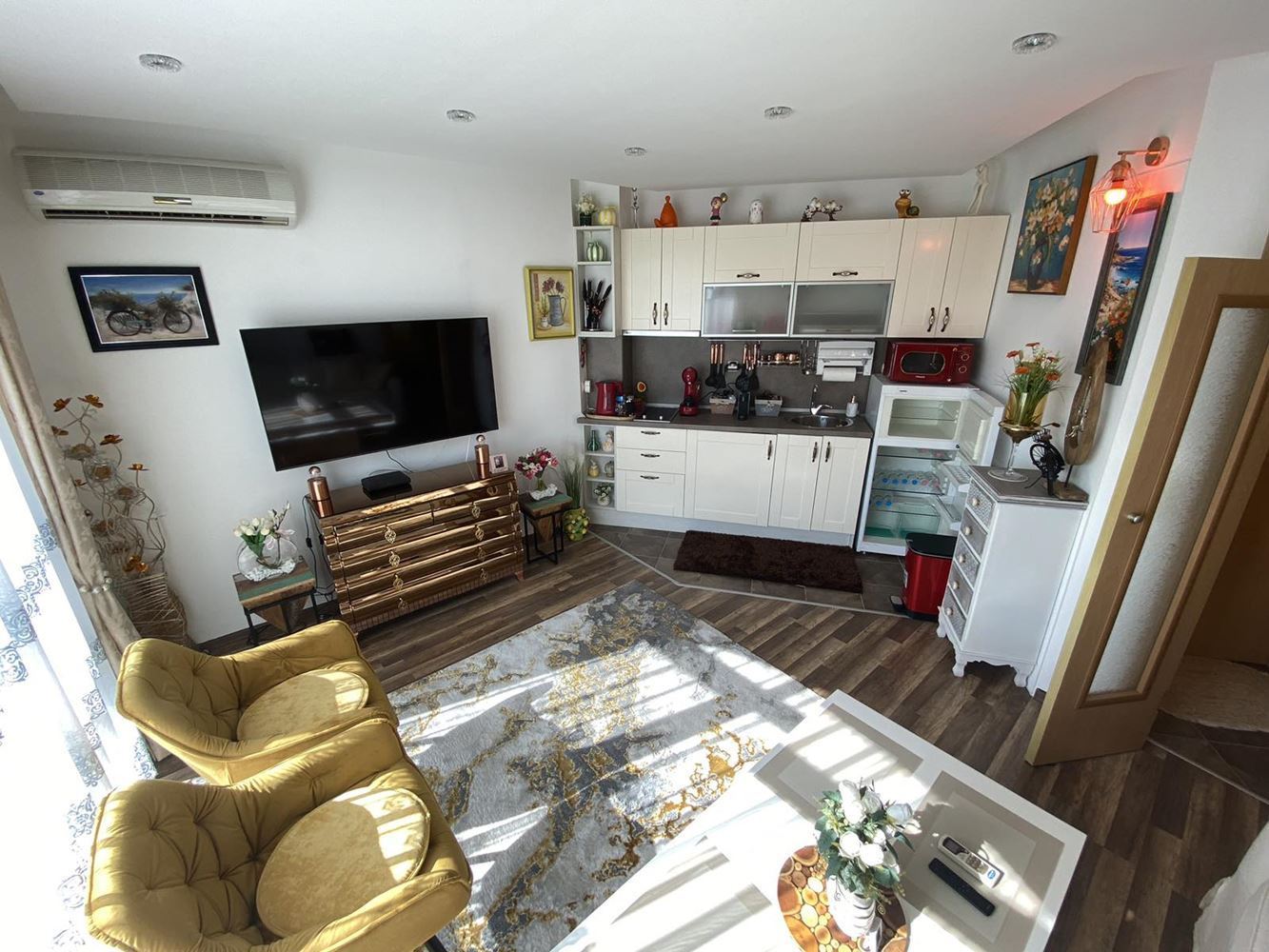 Апартаментът е стилно проектиран и напълно обзаведен с чисто нови мебели, което го прави готов за незабавно нанасяне. Просторното антре води към светла кухня с трапезария, създаваща уютна атмосфера за семейни вечери или приятни срещи с приятели. Отделната спалня предлага тиха и релаксираща обстановка, а модерната баня с тоалетна е завършена с внимание към детайла. Жемчужината на имота е терасата с директна гледка към морето – място, което ще се превърне във вашето любимо кътче за сутрешно кафе или романтични вечери на фона на морския залез.