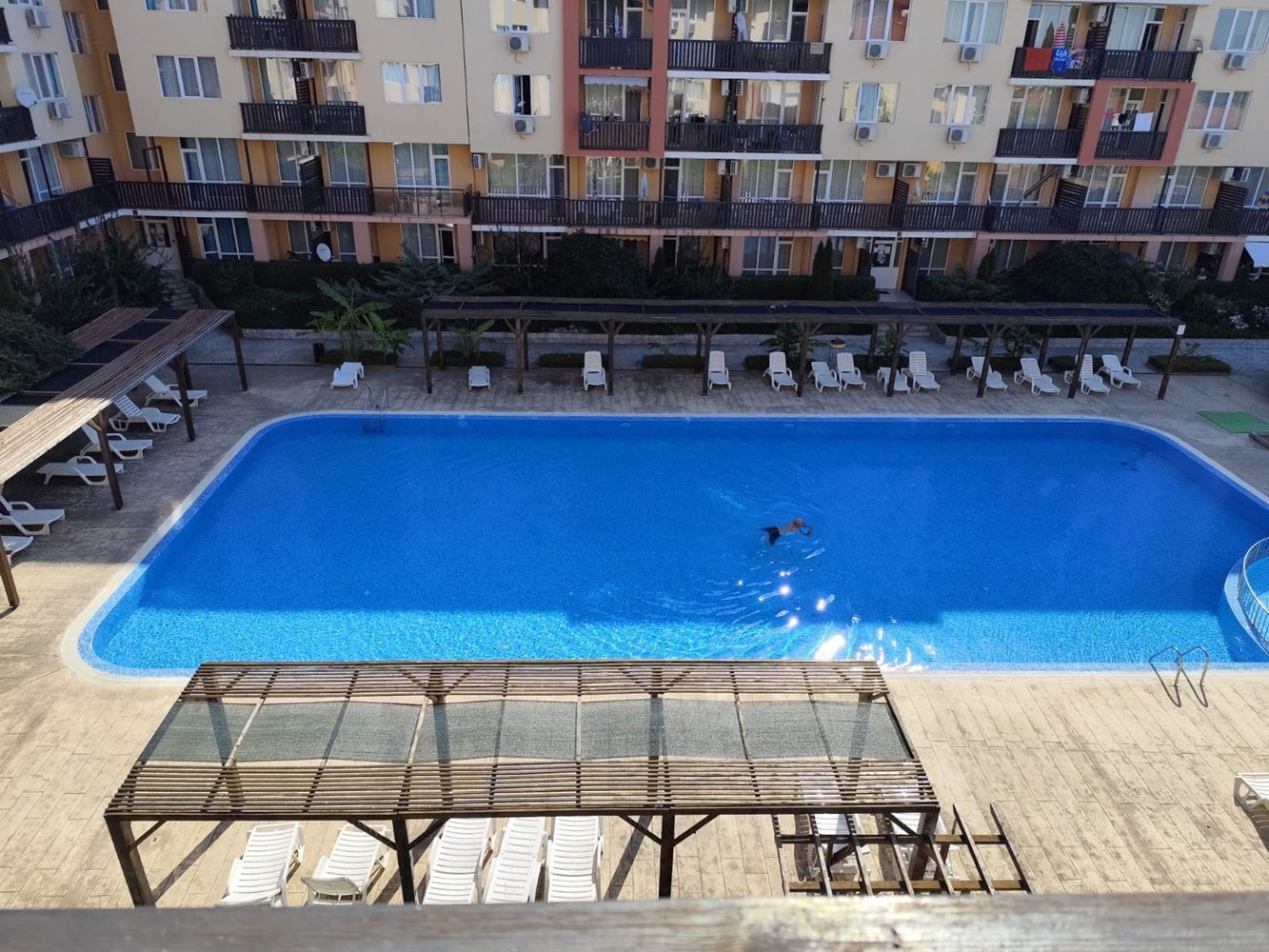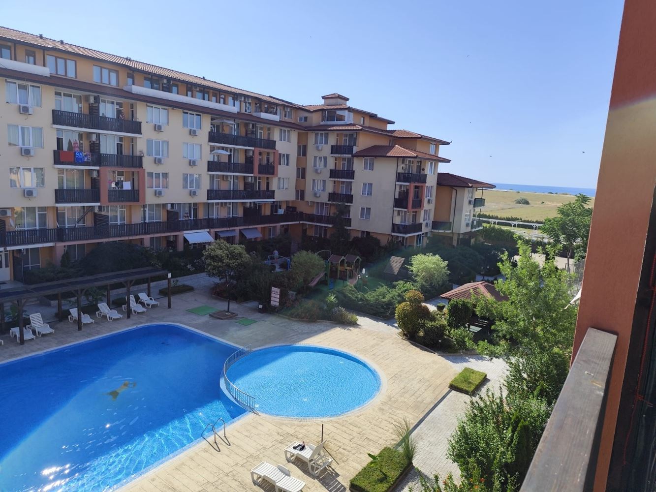 Комплексът предлага богата гама от удобства за своите обитатели: голям плувен басейн – идеален за почивка и релаксация, детска площадка за най-малките, барбекю зона с уютна беседка, както и паркинг за вашия автомобил. Вашата сигурност и комфорт са гарантирани от денонощна охрана и рецепция на територията на комплекса.