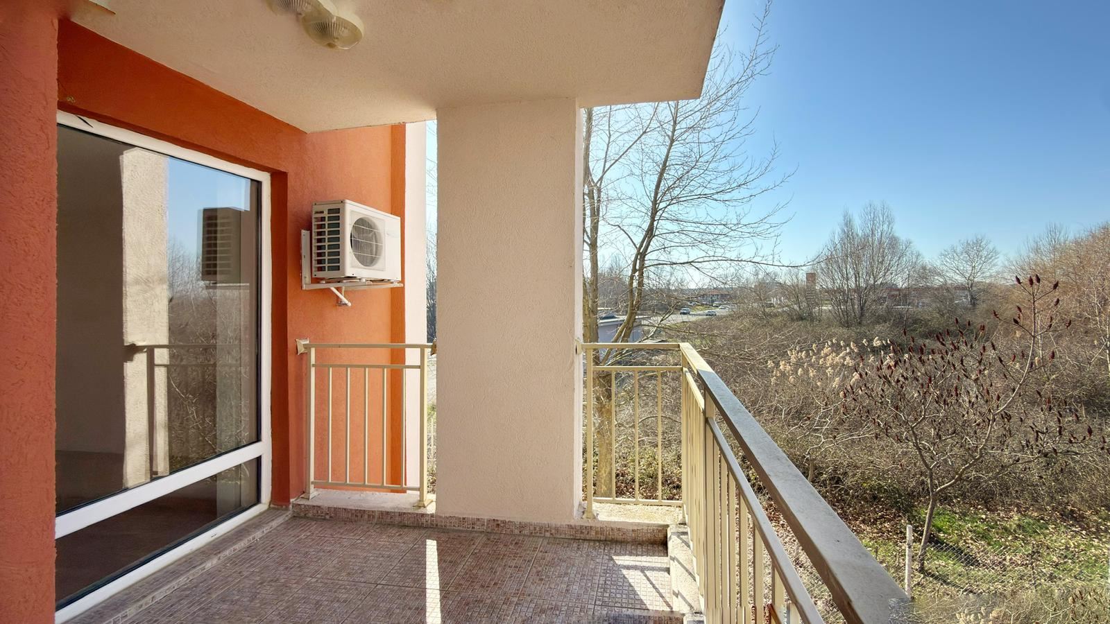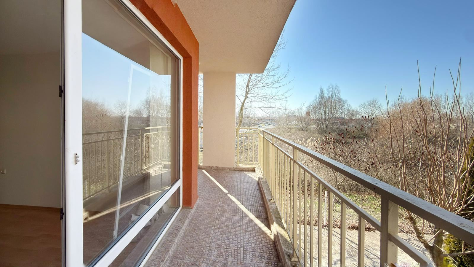 Апартаментът се отличава с приятна гледка към богато озеленената вътрешна градина на комплекса, която създава усещане за спокойствие и хармония. Зеленината и добре поддържаните алеи предразполагат към отдих и разходки, а средният етаж и градинската гледка гарантират прохлада, тишина и уют през целия ден. Имотът разполага с Акт 16, както и отделни партиди за ток и вода, което е голямо предимство за бъдещите собственици и улеснява както постоянното живеене, така и отдаването под наем.