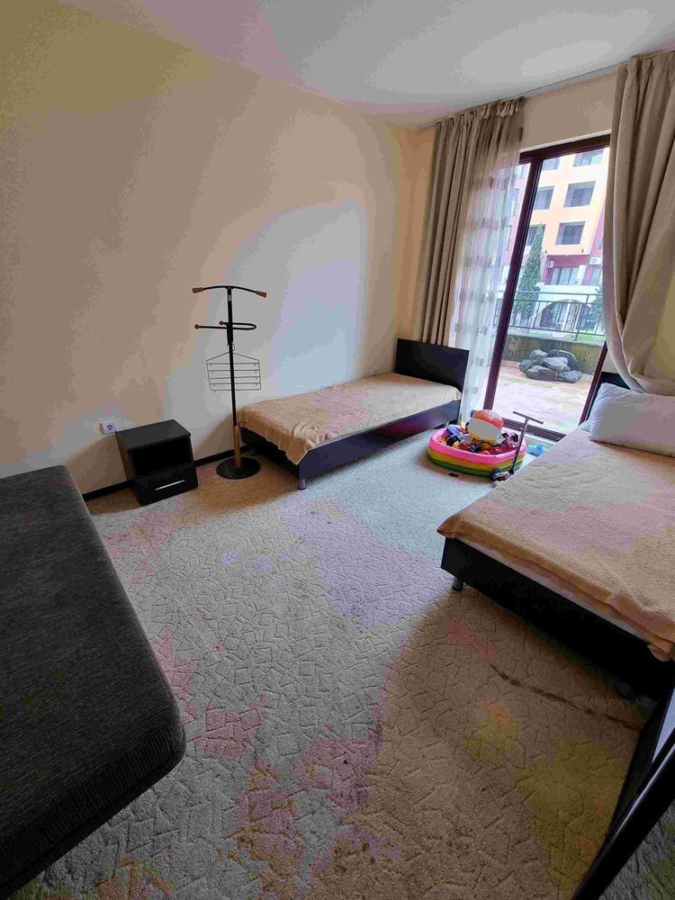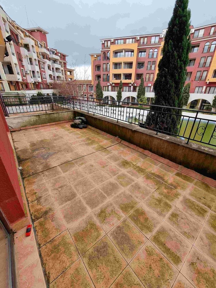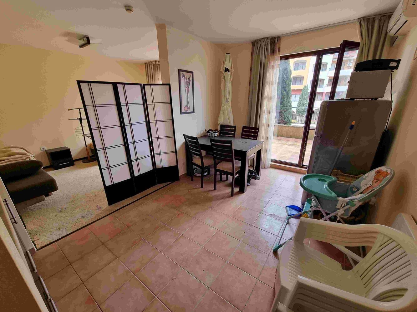 Просторен апартамент с една спалня на брега на морето в малък морски курортен град Ахелой. Комплексът е завършен и пуснат в експлоатация. На площ от 40000 м2 са обособени зони, които придават индивидуалност на целия комплекс. За удобство на гостите и собствениците на апартаменти комплексът предлага следните услуги и удобства - четири ресторанта и няколко кафенета; два плувни басейна с барове и денонощно работещ спасител; СПА център, фитнес център; магазин за хранителни стоки; няколко специализирани магазина; безжичен интернет в целия комплекс. Предлаганият апартамент се намира на втория етаж. Той е с чиста жилищна площ от 58 м2 и има следното разпределение: коридор/входно антре, дневна с кухня, спалня, баня с тоалетна и балкон с гледка към басейна. Продава се напълно обзаведен.