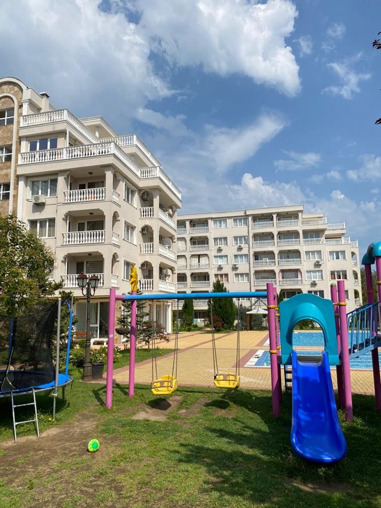 Апартаментът се намира на пешеходно разстояние от всички ключови точки на града - магазини, кафенета и места за отдих. Комплексът разполага с обширна зелена територия, включваща басейн, зона за отдих и детска площадка, предоставящи идеални условия за релаксация и забавление на цялото семейство. Територията е охранявана, като входът е със система за контролиран достъп с чипове, осигурявайки спокойствие и безопасност.