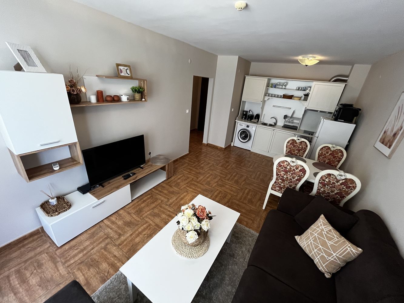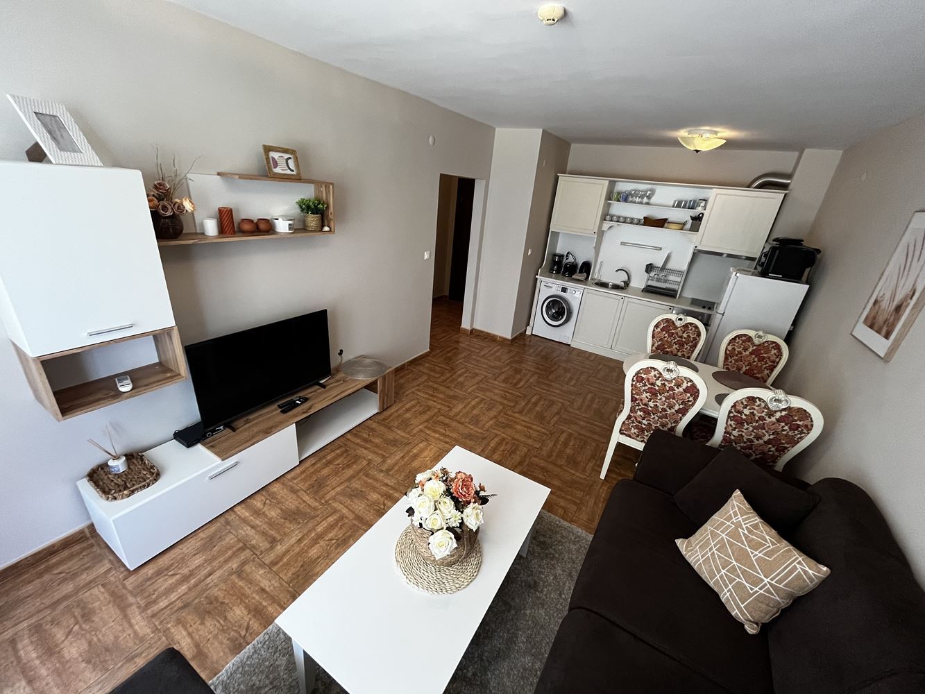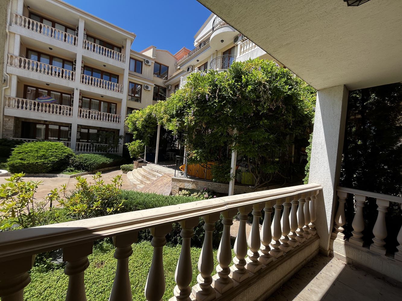Локацията на имота е изключително удобна – комплексът се намира на пешеходно разстояние от магазини, ресторанти и кафенета, а плажът е непосредствено пред сградата, което го прави идеален както за лична почивка, така и за инвестиция с висок потенциал за отдаване под наем.