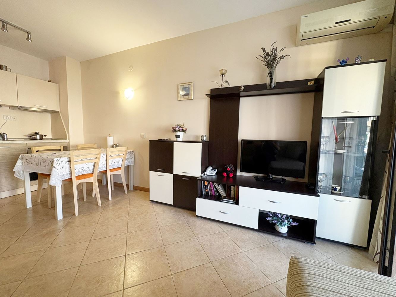 С площ от 49 квадратни метра, този апартаментът се намира на партер, предлагайки страхотна тераса с излаз към дворче и басейна, което дава допълнително усещане за почивка на море. Жилището се предлага напълно обзаведено, което го прави готово за живеене веднага след покупката.