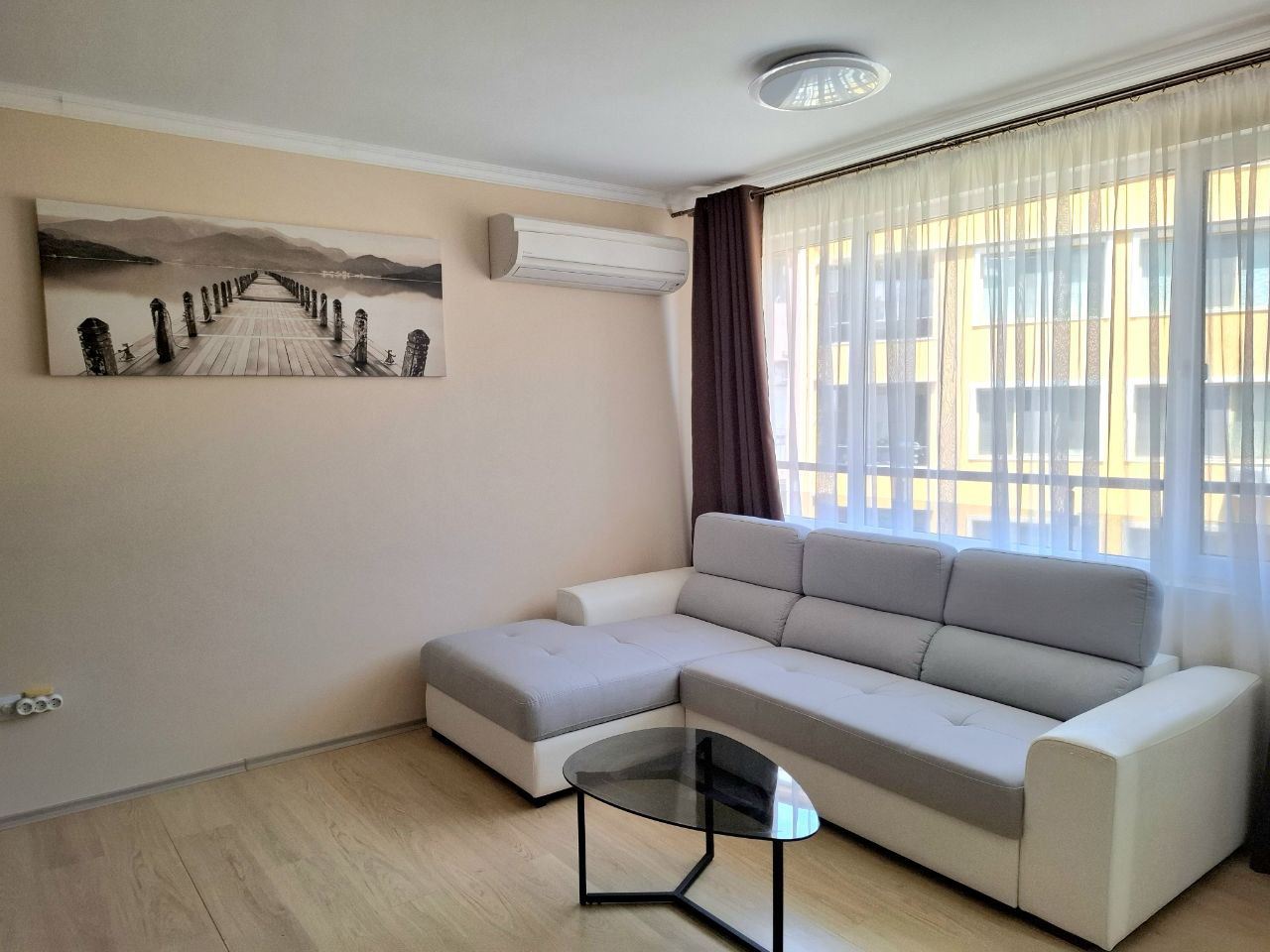 Апартаментът предлага функционално и удобно разпределение, като едно от основните му предимства е подовото отопление във всички стаи, което осигурява висок комфорт през зимните месеци и го прави напълно подходящ за целогодишно обитаване. Сградата е без такса за поддръжка, което значително намалява месечните разходи и повишава атрактивността на имота.