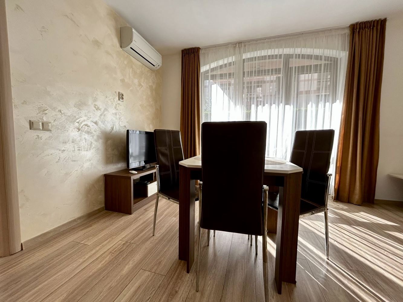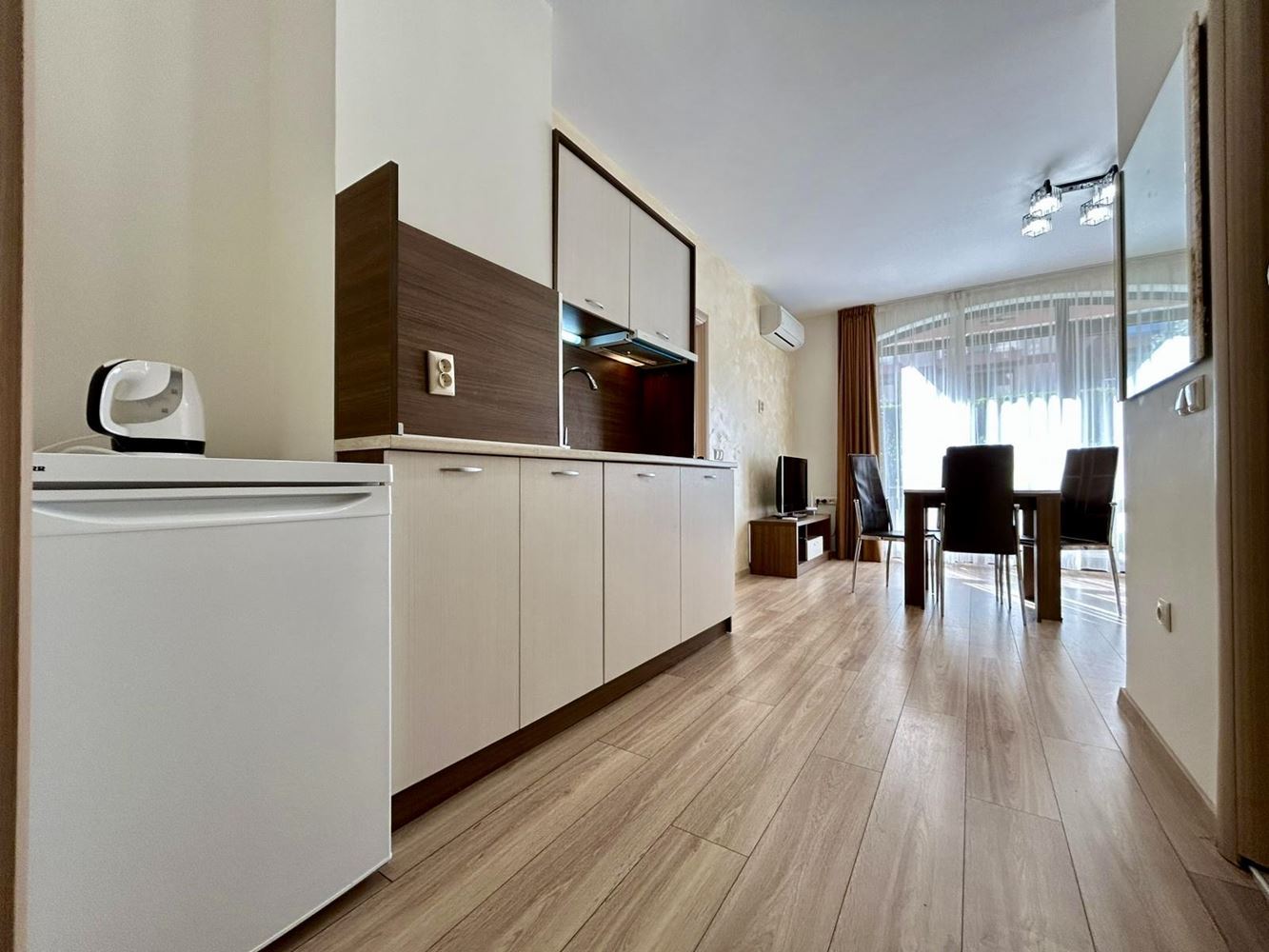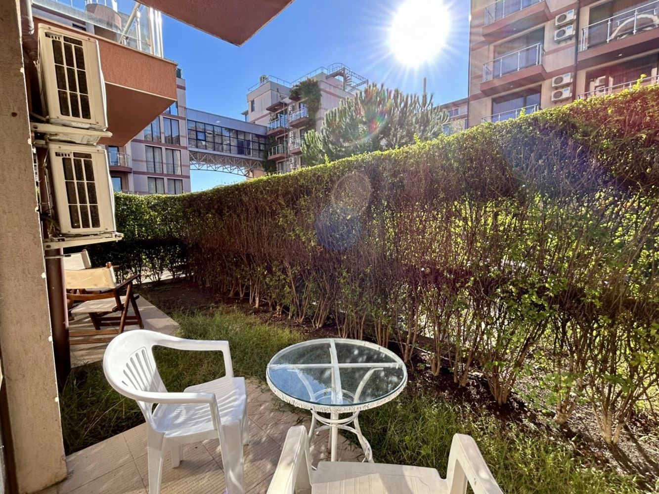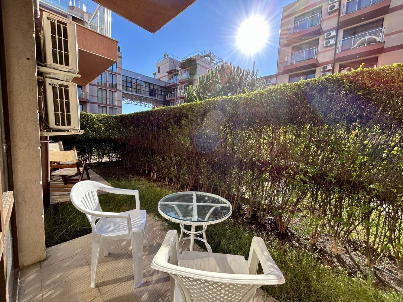 Двустаен апартамент с просторна тераса и директен достъп до басейна в Слънчев бряг