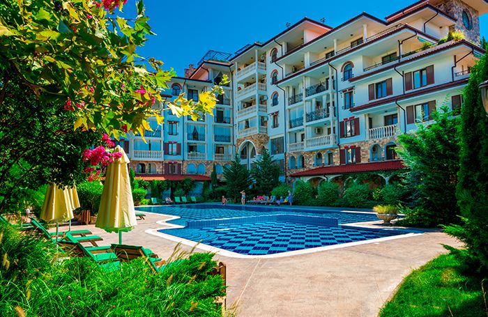 Двустаен апартамент в елитен комплекс с мини голф, басейн и подземен паркинг в Несебър