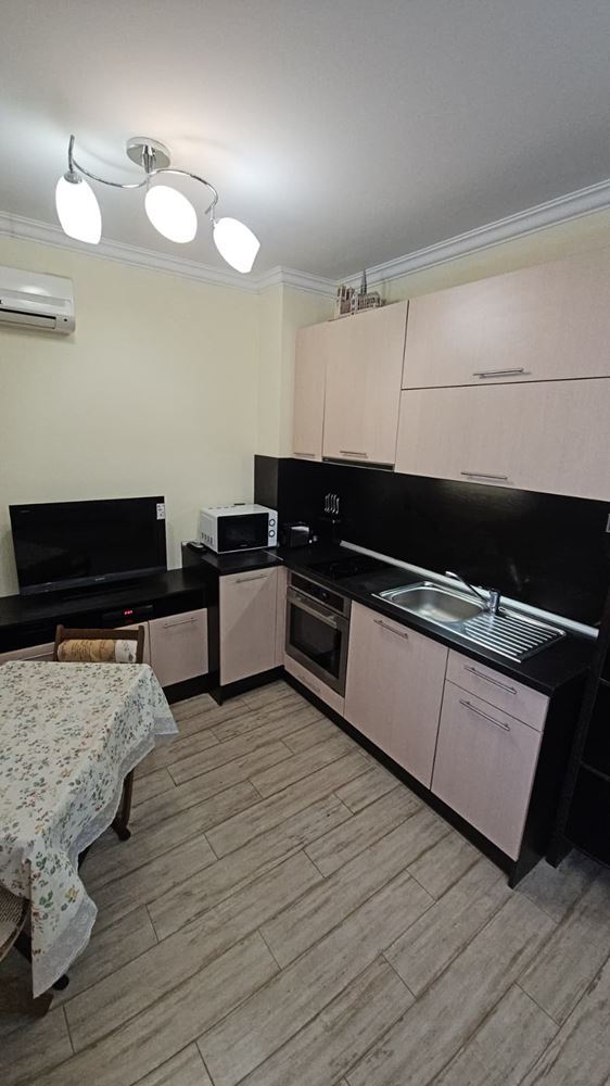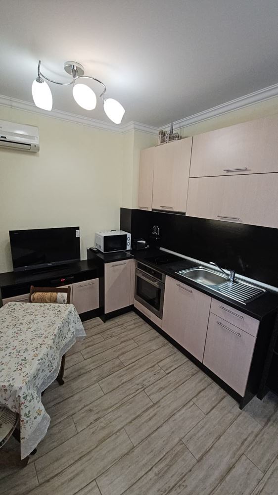 Жилището е разпределено удобно и практично – включва просторна кухня с хол и отделна спалня, създавайки комфортно и функционално пространство за живеене или ваканционен престой. Съчетанието от светли помещения и добре планирана площ прави апартамента идеален за семейна почивка или целогодишно обитаване.