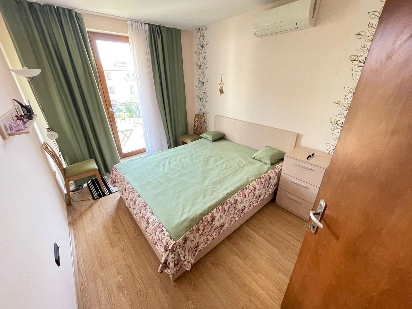 Двустаен апартамент в луксозен комплекс на първа линия море в Свети Влас. Апартаментът е на трети етаж и се продава напълно обзаведен. Комплексът има собствена плажна ивица, а в непосредствена близост граничи с иглолистна и широколистна гора. Архитектурата е в традиционен тракийски стил с характерните керемидени покриви в комбинация от дърво и камък. На територията на комплекса има тропическа градина, много цветни лехи, алеи, малки мостчета и беседки. На брега е изграден малък кей. Комплексът разполага със седем плувни басейна и един закрит басейн, три ресторанта, аква-барове, два тенис корта, фитнес зала, интернет зала, козметичен салон със сауна и солариум, фризьорски салон, супермаркет, обменно бюро, паркинг.