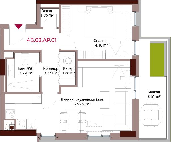Апартаментът е подходящ както за инвестиция и отдаване под наем, така и за лично ползване. Към имота може да се закупи паркомясто в подземен паркинг на три нива.