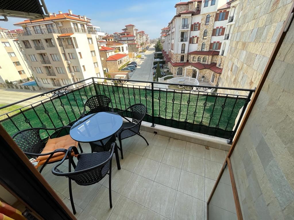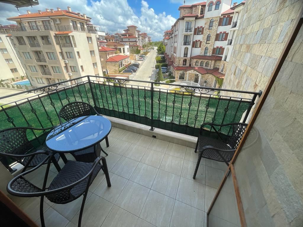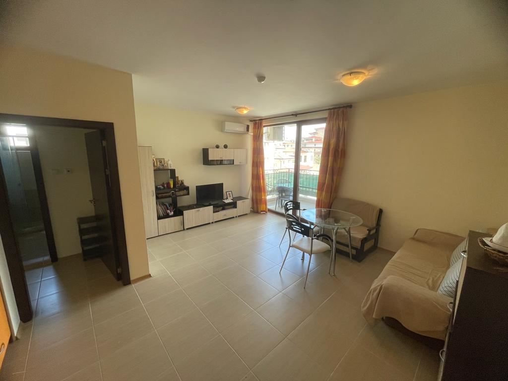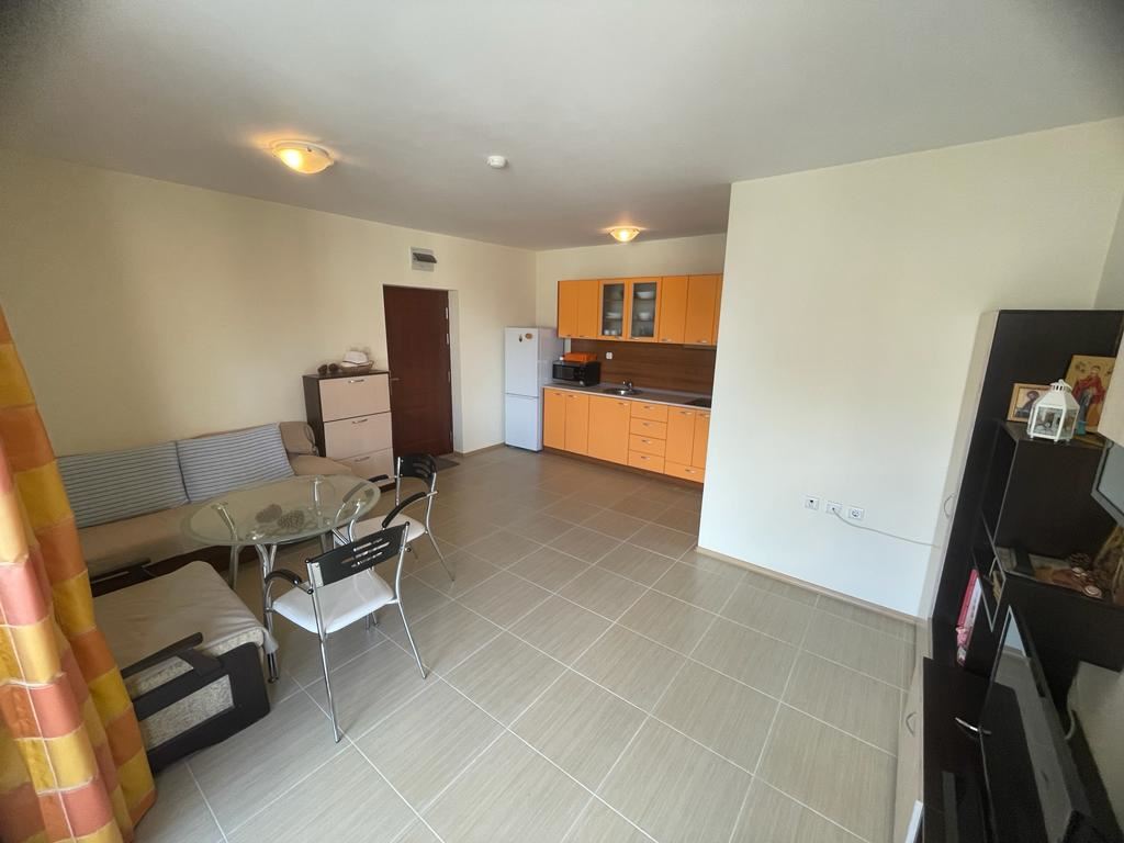 Атрактивен двустаен апартамент в комплекс в град Несебър е много привлекателно предложение за живеене или инвестиция. Апартаментът е разположен на четвъртия етаж и има гледка към територията на комплекса. Местоположението на този апартамент ви доближава до морето и красивото българско крайбрежие. Жилището е с площ от 64 м2 и се състои от просторна дневна с кухня и трапезария, коридор, една спалня, баня с WC и балкон. Това е функционално пространство, което може да се използва както за постоянно живеене, така и за отдаване под наем. Жилището се продава с мебели и уреди, което го прави готово за живеене без допълнителни разходи. Комплексът предлага широки удобства, включително плувни басейни с детска секция, ресторанти, кафенета, минимаркет, спа център, тенис кортове, детска площадка и безплатен паркинг. Тези удобства ще обогатят почивката ви по време на престоя ви или ще направят имота по-привлекателен за отдаване под наем. Апартаментът е в перфектно състояние и ви освобождава от грижите за ремонта.