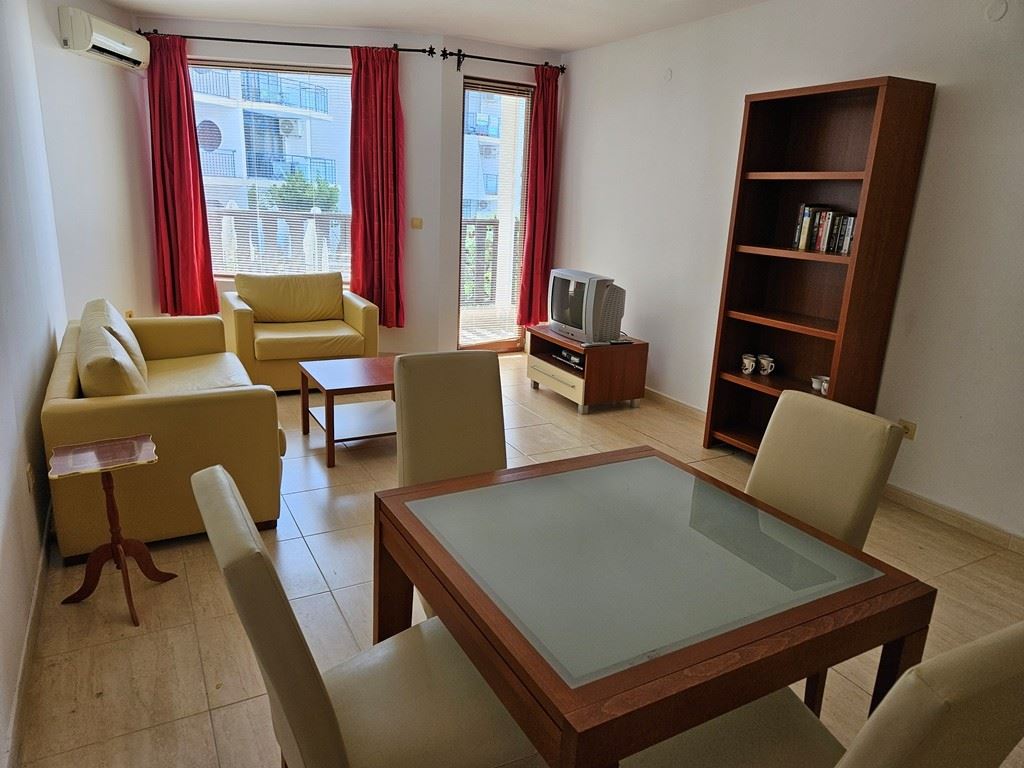 Представяме ви изискан двустаен апартамент с уникална морска панорама, разположен в един от най-престижните комплекси в Свети Влас, точно на първа линия. С площ от 62 м2, този апартамент предлага комфорт и непосредствена близост до плажа и яхтеното пристанище. Апартаментът е разположен на първи жилищен етаж и се отличава с елегантен интериор, напълно обзаведен и готов за незабавно нанасяне. Просторният хол и уютната спалня са изпълнени със светлина и предоставят великолепен изглед към морето. От балкона можете да се насладите на свежия морски бриз и спиращи дъха залези.
