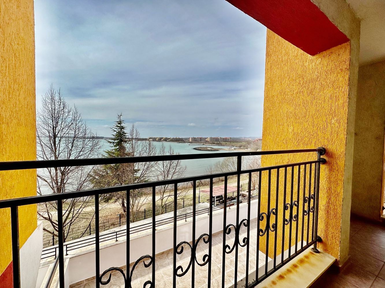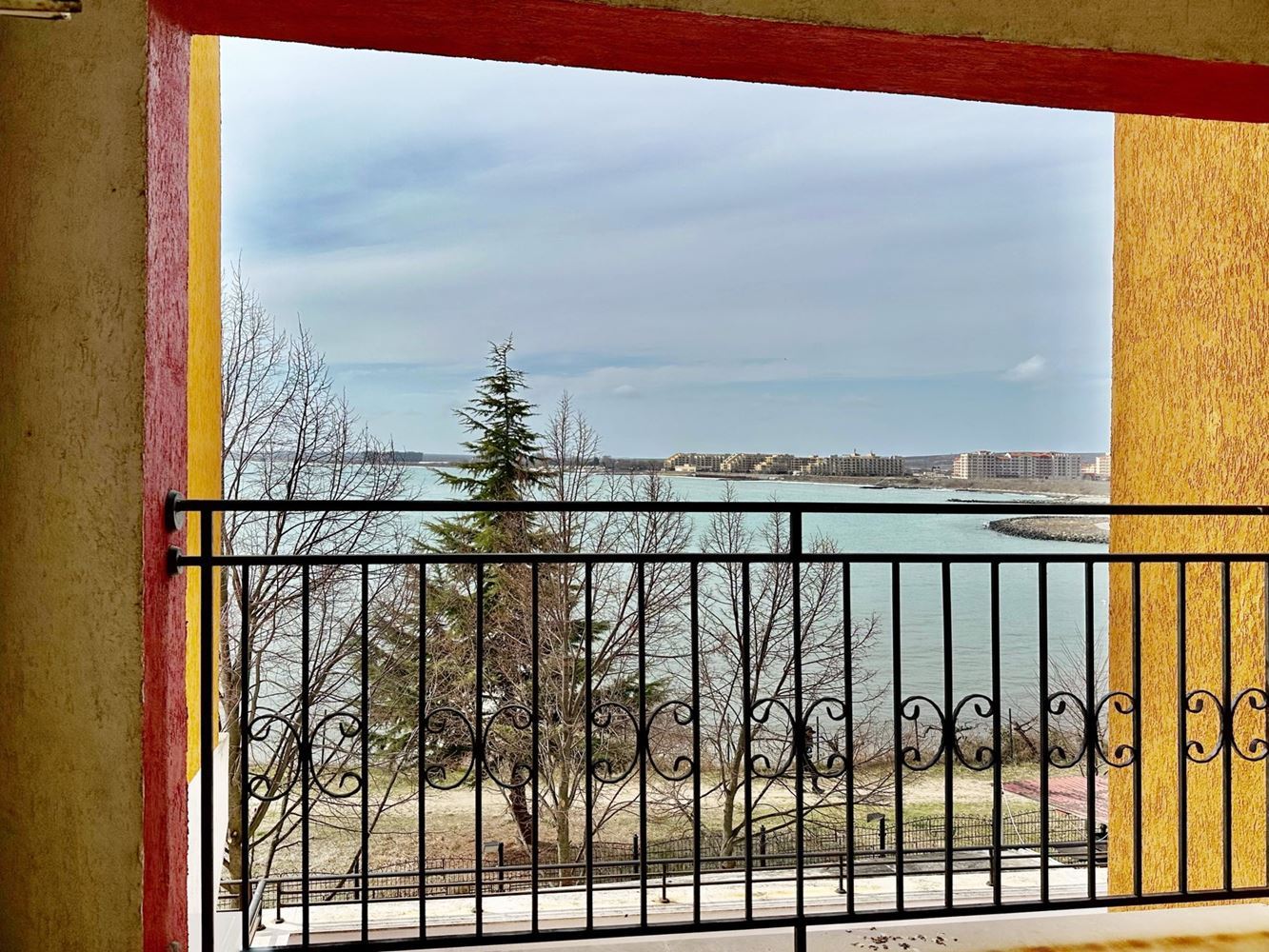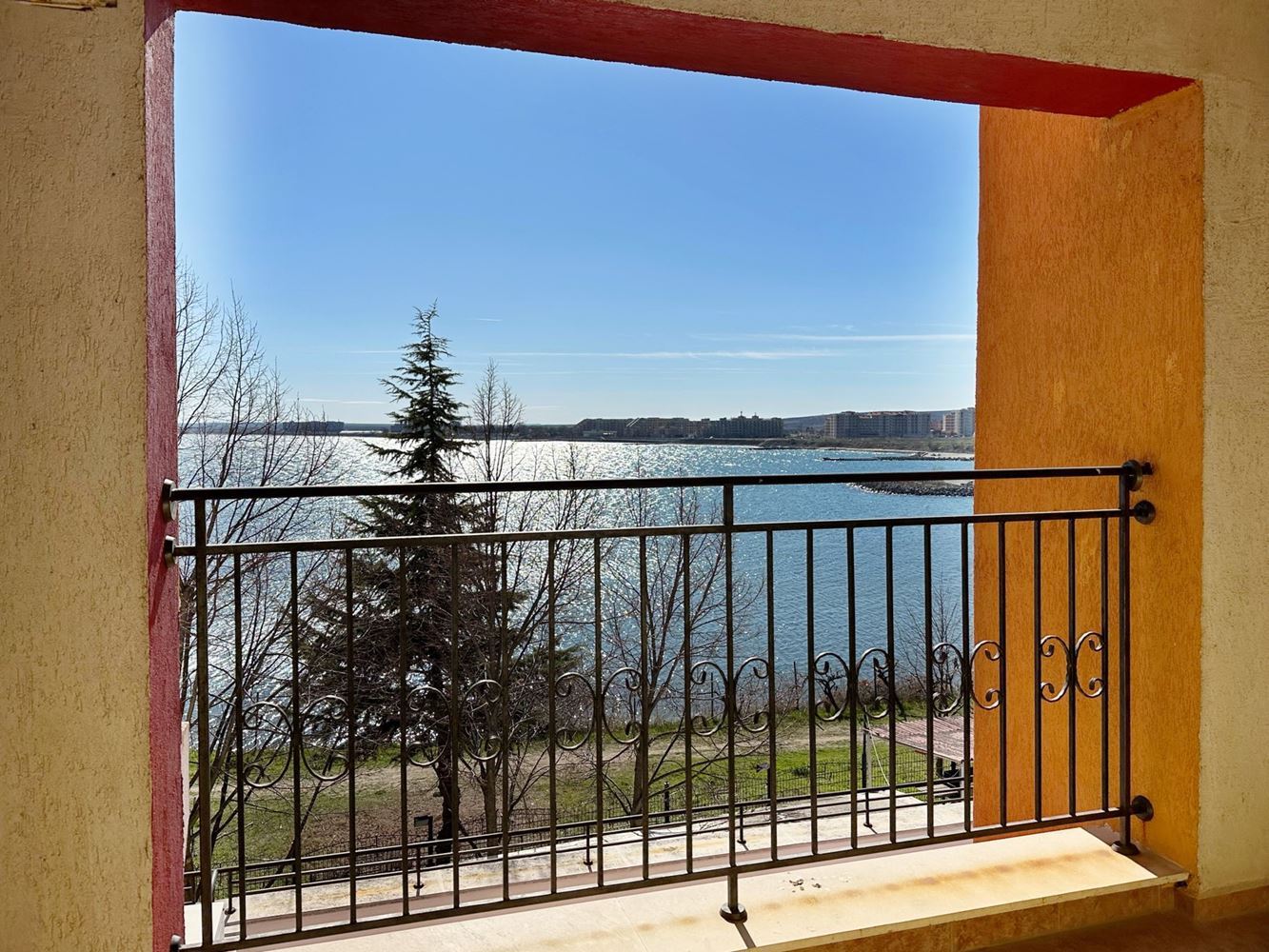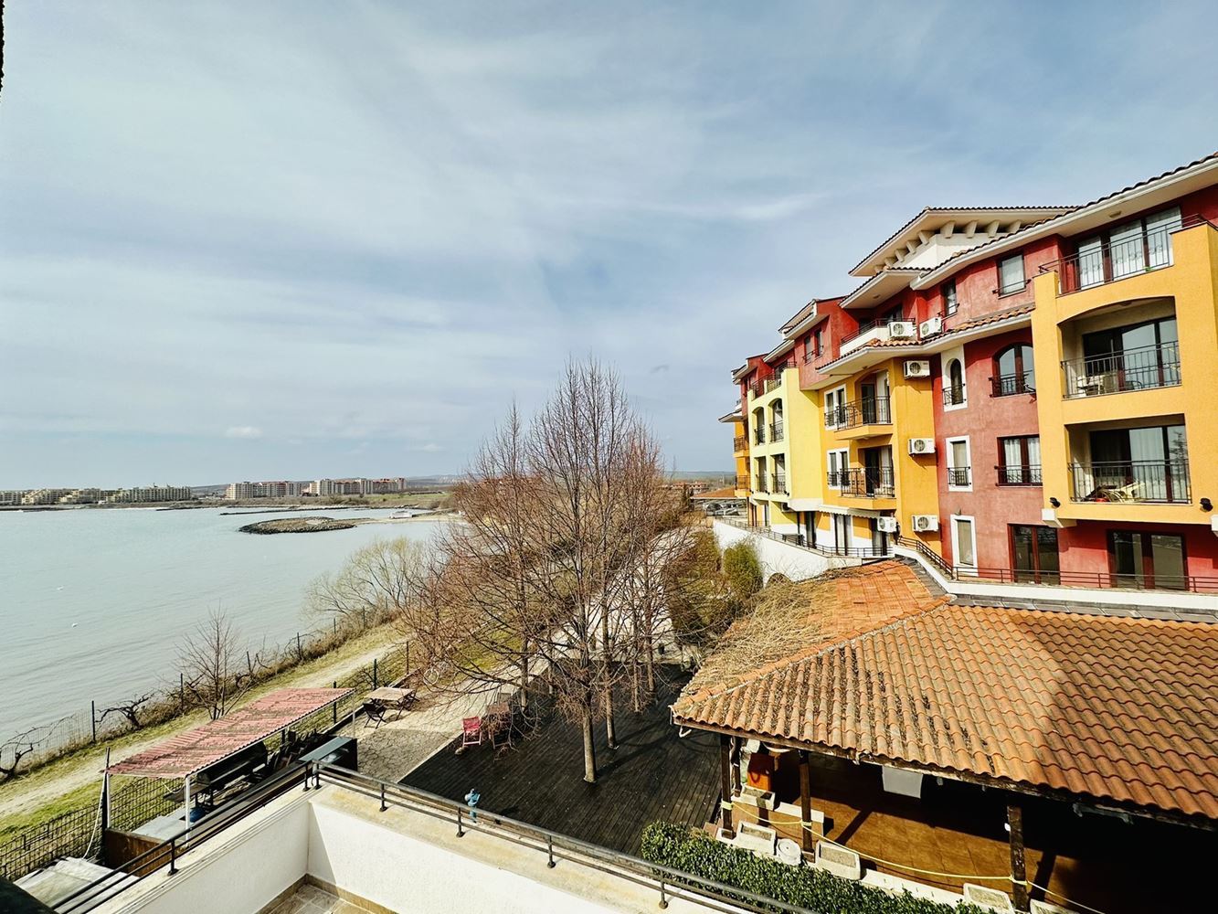 Двустаен просторен апартамент с директна гледка море в комплекс на първа линия в гр. Ахелой. Жилището е с площ от 84 кв. м. на трети етаж. Състои се от хол с обособена кухня, спалня, баня с тоалетна и голяма тераса с панорамна гледка море и плаж. Комплексът граничи с чудесен уединен плаж с бял пясък и прозрачно чиста вода. Продава се напълно обзаведен. Удобства: 3 ресторанта; СПА центърът; 3 сауни; йонен детоксикатор; джакузи за 15 души; фитнес център на 2 нива, който се характеризира с богато разнообразие от кардио и фитнес уреди; медицинска грижа. Осигурено сътрудничество с местни регионални болници с цел осигуряване на медицинска помощ от всякакво естество, от която нашите гости и собственици биха могли да се нуждаят; детски център с две отделни помещения за по-малките джунгла от дунапрен и тенис на маса, дартс и пр. за по-големите деца; боулинг с четири коридора проектиран от Pinin Farina - дизайнерите на Ferrari; билярд; супермаркет; магазин за цигари и алкохол; шопинг център; магазин за сувенири; басейни; воден бар; конферентен център; паркинг; яхт-порт с малко яхтено пристанище.