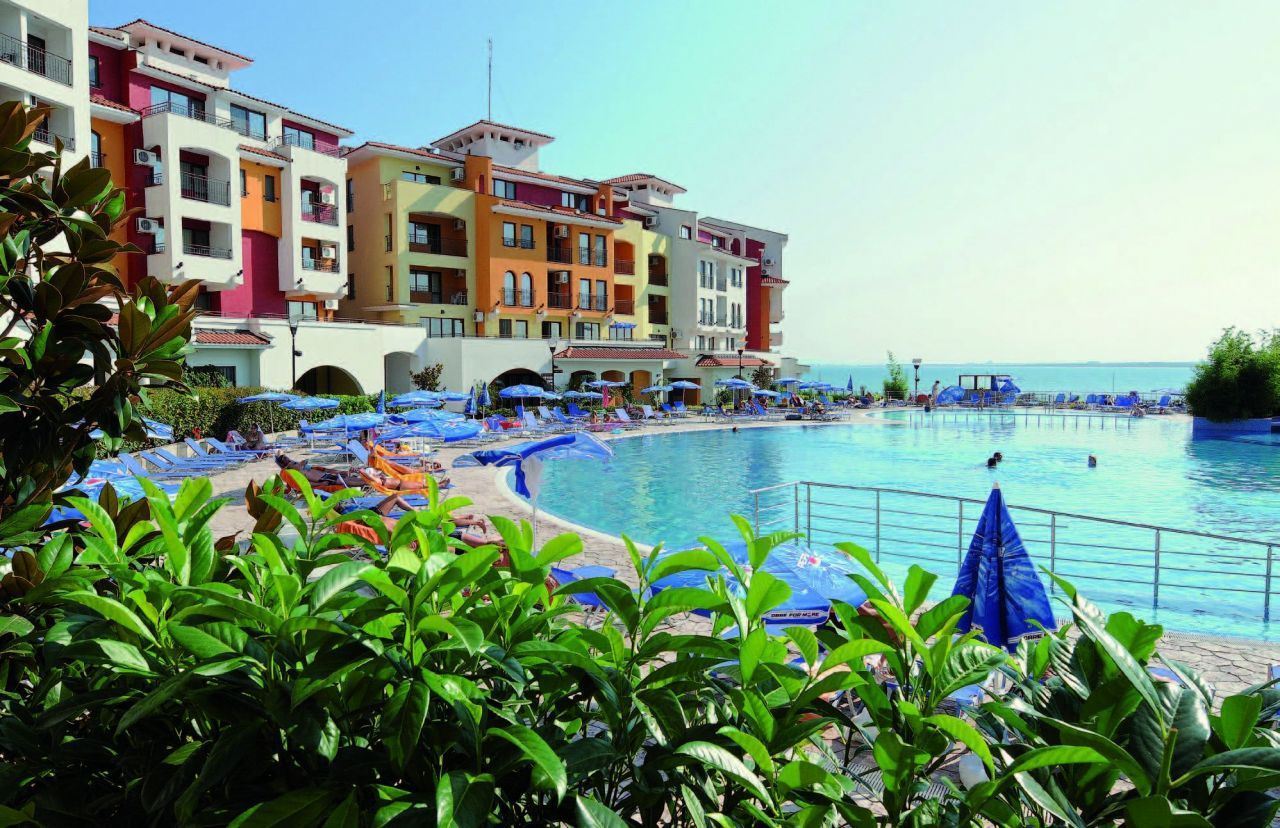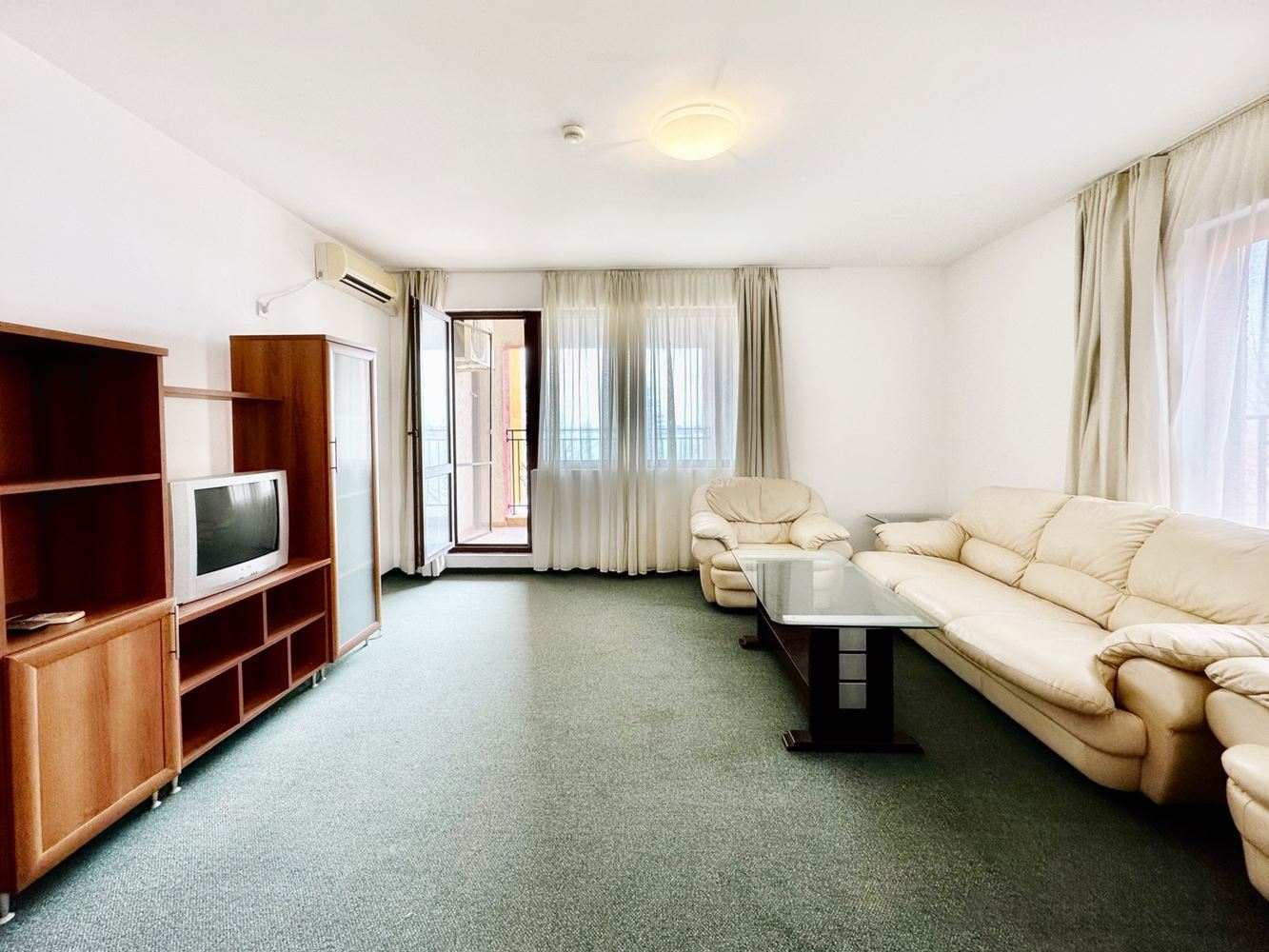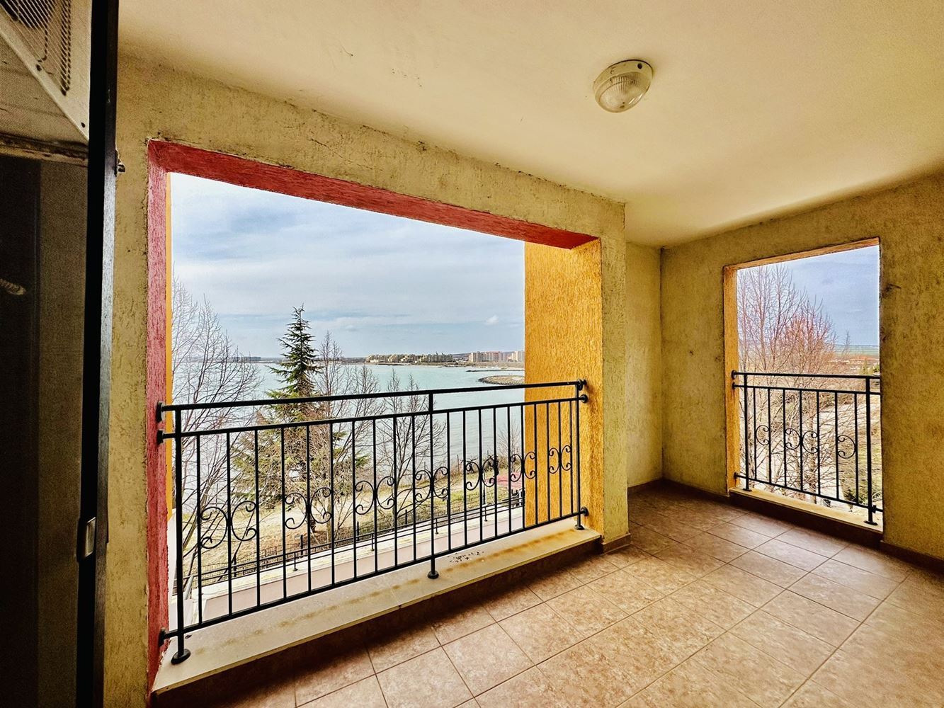 Двустаен просторен апартамент с директна гледка море в комплекс на първа линия в гр. Ахелой. Жилището е с площ от 84 кв. м. на трети етаж. Състои се от хол с обособена кухня, спалня, баня с тоалетна и голяма тераса с панорамна гледка море и плаж. Комплексът граничи с чудесен уединен плаж с бял пясък и прозрачно чиста вода. Продава се напълно обзаведен. Удобства: 3 ресторанта; СПА центърът; 3 сауни; йонен детоксикатор; джакузи за 15 души; фитнес център на 2 нива, който се характеризира с богато разнообразие от кардио и фитнес уреди; медицинска грижа. Осигурено сътрудничество с местни регионални болници с цел осигуряване на медицинска помощ от всякакво естество, от която нашите гости и собственици биха могли да се нуждаят; детски център с две отделни помещения за по-малките джунгла от дунапрен и тенис на маса, дартс и пр. за по-големите деца; боулинг с четири коридора проектиран от Pinin Farina - дизайнерите на Ferrari; билярд; супермаркет; магазин за цигари и алкохол; шопинг център; магазин за сувенири; басейни; воден бар; конферентен център; паркинг; яхт-порт с малко яхтено пристанище.