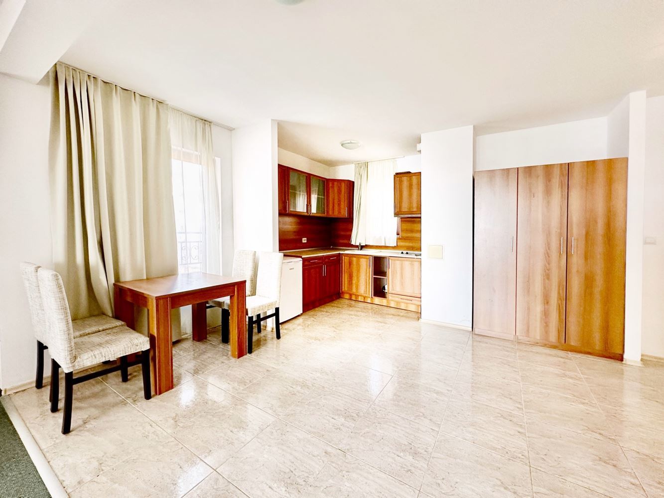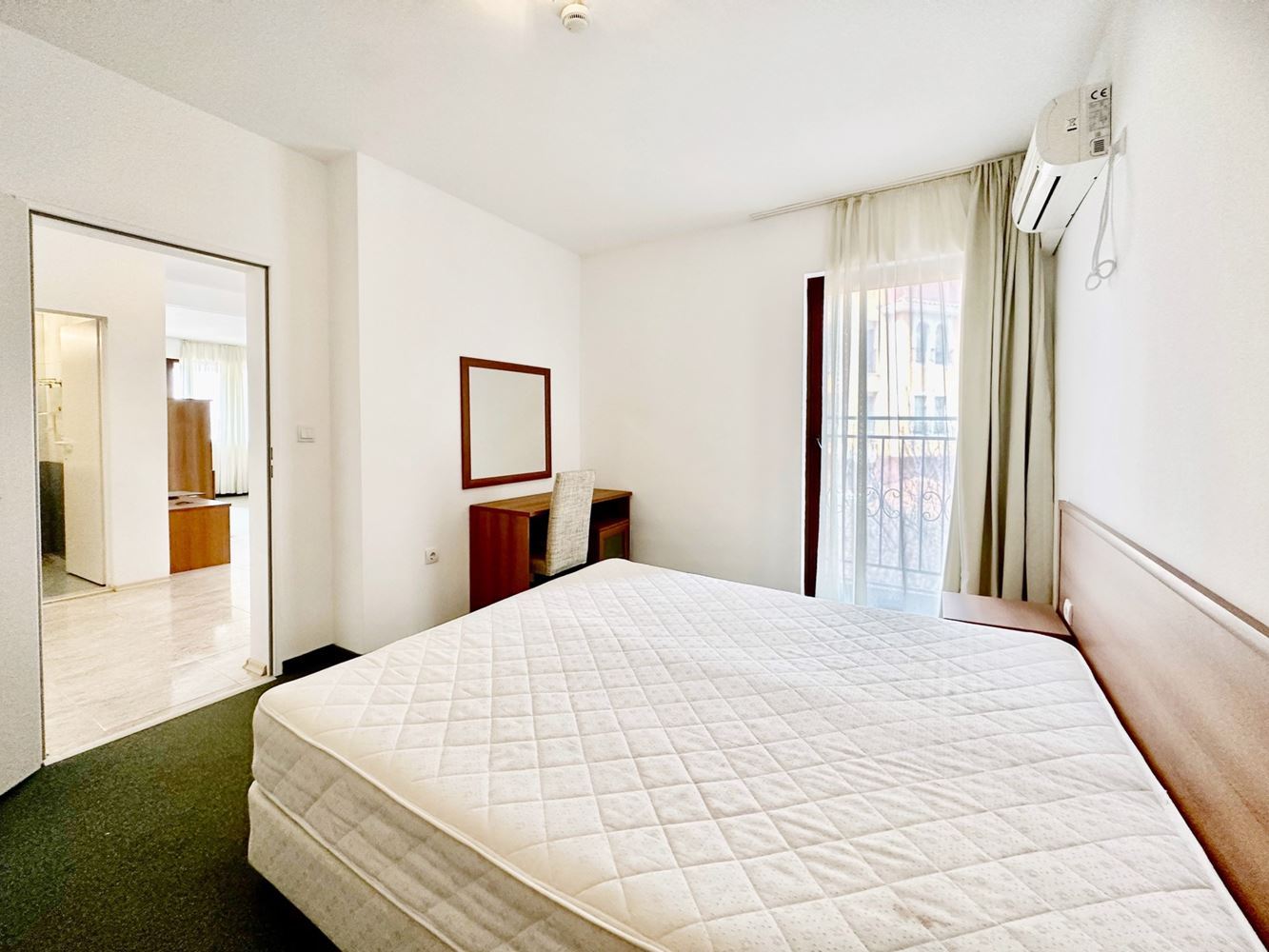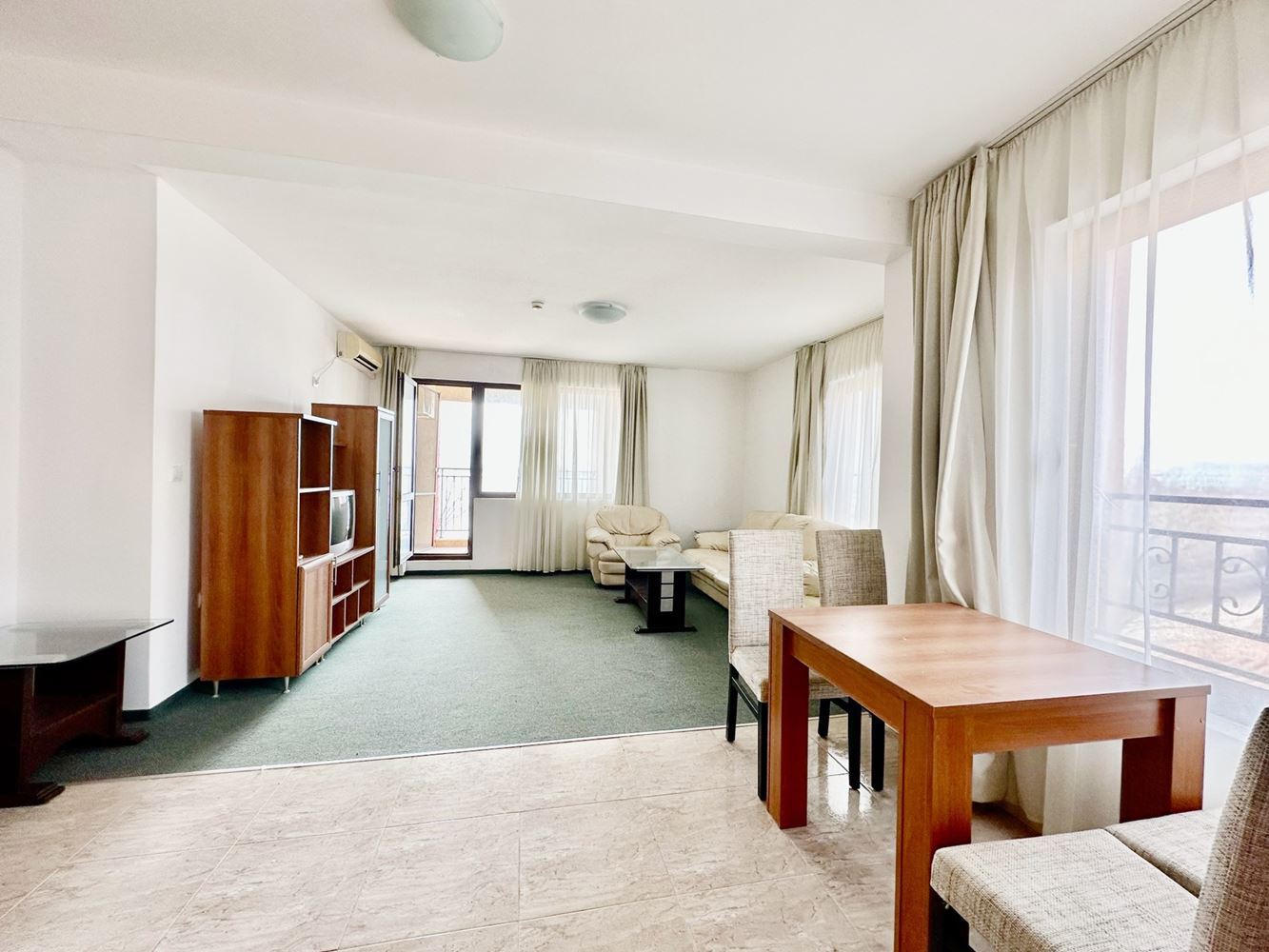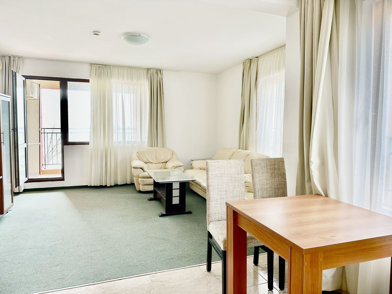 Двустаен просторен апартамент с директна гледка море в комплекс на първа линия в гр. Ахелой. Жилището е с площ от 84 кв. м. на трети етаж. Състои се от хол с обособена кухня, спалня, баня с тоалетна и голяма тераса с панорамна гледка море и плаж. Комплексът граничи с чудесен уединен плаж с бял пясък и прозрачно чиста вода. Продава се напълно обзаведен. Удобства: 3 ресторанта; СПА центърът; 3 сауни; йонен детоксикатор; джакузи за 15 души; фитнес център на 2 нива, който се характеризира с богато разнообразие от кардио и фитнес уреди; медицинска грижа. Осигурено сътрудничество с местни регионални болници с цел осигуряване на медицинска помощ от всякакво естество, от която нашите гости и собственици биха могли да се нуждаят; детски център с две отделни помещения за по-малките джунгла от дунапрен и тенис на маса, дартс и пр. за по-големите деца; боулинг с четири коридора проектиран от Pinin Farina - дизайнерите на Ferrari; билярд; супермаркет; магазин за цигари и алкохол; шопинг център; магазин за сувенири; басейни; воден бар; конферентен център; паркинг; яхт-порт с малко яхтено пристанище.