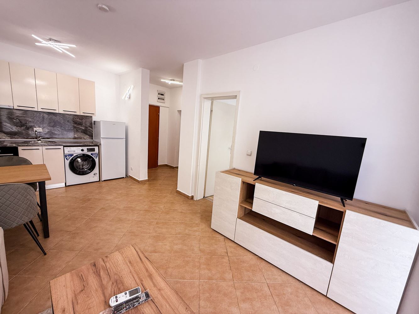 Жилището се продава напълно обзаведено и оборудвано с всичко необходимо за незабавно нанасяне – от качествени уреди до домакински принадлежности, осигуряващи комфорт и практичност в ежедневието. Интериорът е поддържан, с приятни тонове и усещане за простор и светлина.