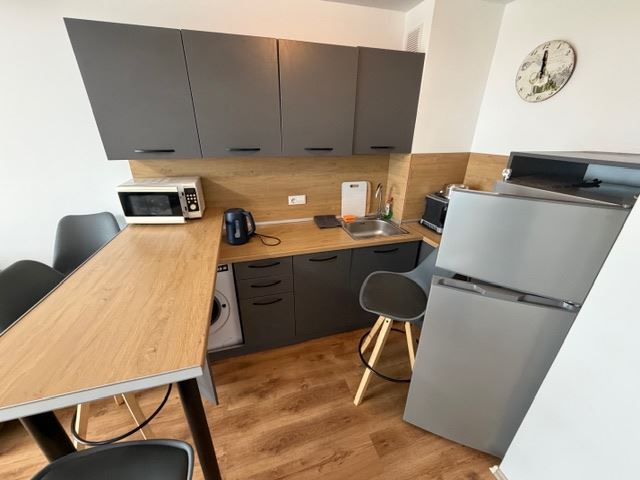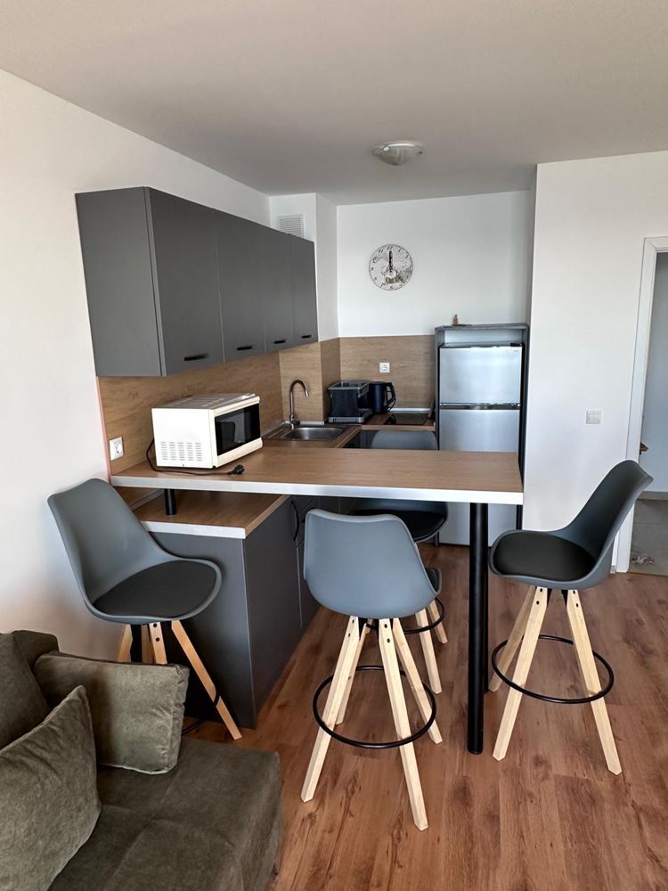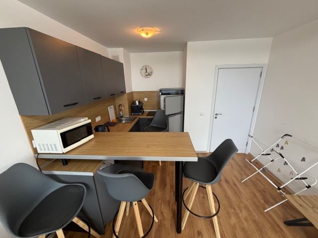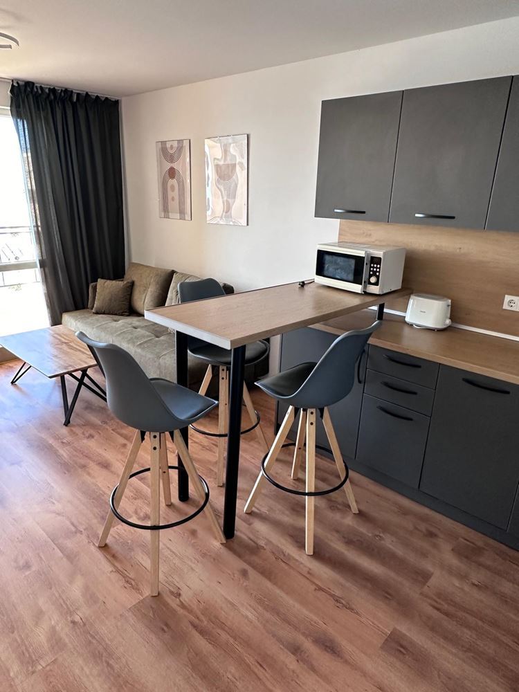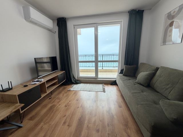 Разположението на имота е изключително удобно – дневната и кухнята са светли и функционални, а спалнята предлага уют и комфорт. Големият балкон с морска панорама е перфектното място за сутрешно кафе или вечерна почивка, наслаждавайки се на морския бриз и спокойствието на курорта.