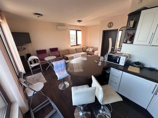 Предлагаме ви изключително атрактивен двустаен апартамент, разположен на последния – петия етаж в сграда без асансьор, което гарантира спокойствие, тишина и пълна самостоятелност. Имотът е единствен апартамент на етажа, осигуряващ максимално уединение и комфорт – рядко срещано предимство, особено в морските райони.