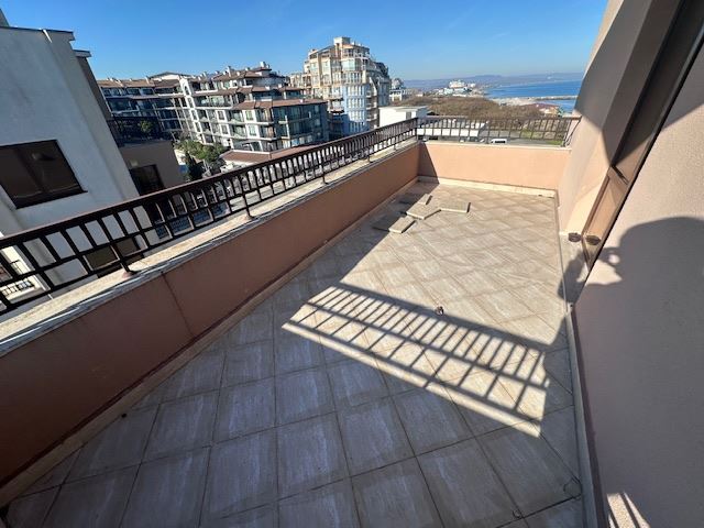 Истинската перла на този имот е огромната покривна тераса, разположена над апартамента, която предлага невероятни възможности за обособяване на зона за отдих, слънчеви бани, барбекю, градина или панорамна лаундж зона с неповторима морска панорама. Това пространство превръща апартамента в уникален имот с характер на пентхаус.
