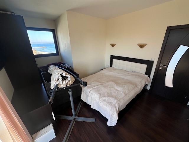 Апартаментът е с просторна площ от 80 м2 и впечатлява с фронтална, открита гледка към морето, която се разкрива директно пред вас и създава усещане за свобода и безкрай. Пространствата са светли и функционални, подходящи както за ваканционно ползване, така и за целогодишно живеене.