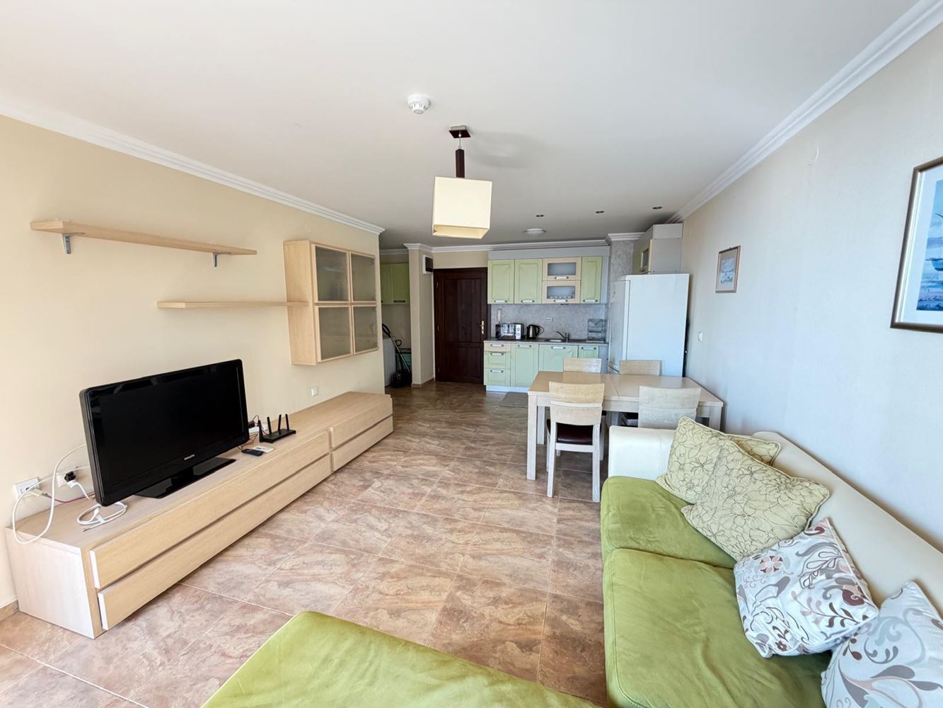 Представяме ви напълно обзаведен двустаен апартамент, разположен на втори етаж в престижен комплекс на първа линия над яхтеното пристанище в Свети Влас. С обща площ от 62 м², този имот съчетава комфорт, функционалност и изключителна морска локация, превръщайки го в отличен избор както за лично ползване, така и за инвестиция с висок потенциал за отдаване под наем. Апартаментът е с практично разпределение и включва светла дневна с кухненски бокс, уютна спалня, баня с тоалетна и тераса с красива директна гледка към морето. Пространствата са организирани така, че да осигуряват максимално удобство и усещане за простор. Жилището се продава напълно обзаведено и оборудвано, което позволява незабавно нанасяне или отдаване под наем без допълнителни инвестиции.