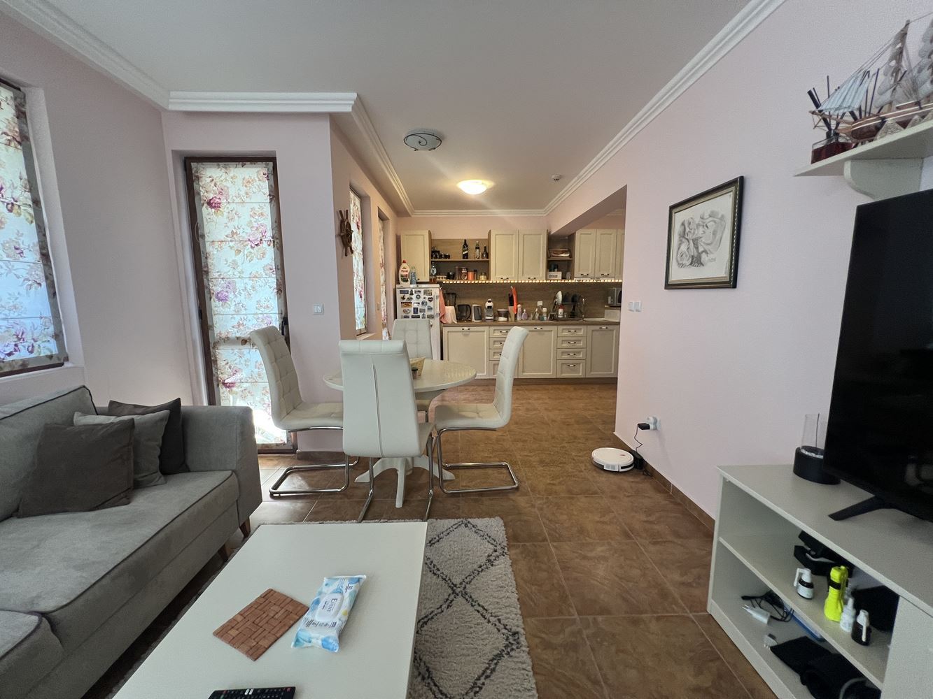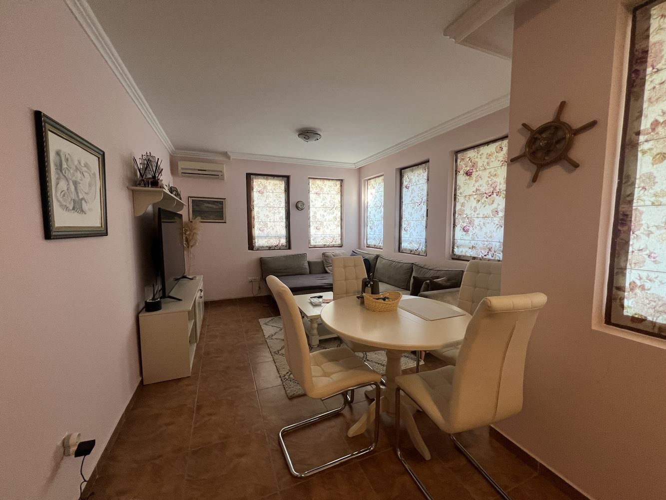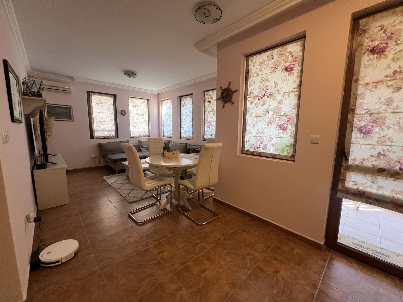 Представяме ви просторен и стилно обзаведен тристаен апартамент, разположен в един от най-престижните комплекси в Свети Влас, само на 300 метра от морето и известното яхтено пристанище. Локацията съчетава спокойствието на морския курорт с близостта до всички удобства, които правят живота край морето комфортен и приятен. Комплексът впечатлява със своята уникална архитектура, вдъхновена от традиционния български стил, където естественият камък, дървените елементи и класическият червен керемиден покрив се съчетават в хармония и създават атмосфера на уют и елегантност. Около сградите са оформени богато озеленени градини, алеи за разходка и множество зони за отдих, които създават усещане за спокойствие и ваканционен комфорт.