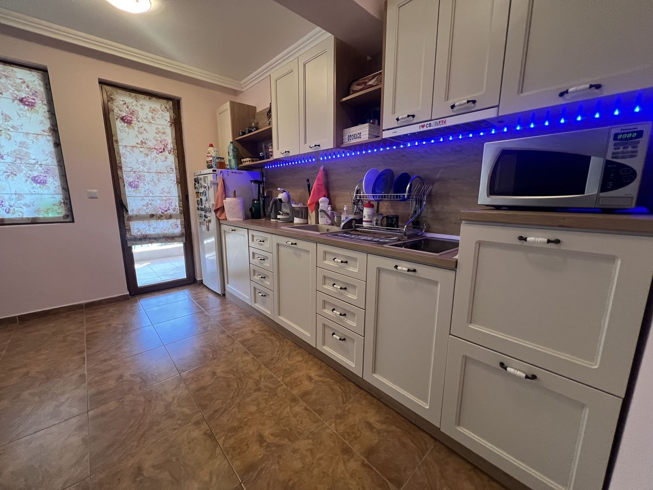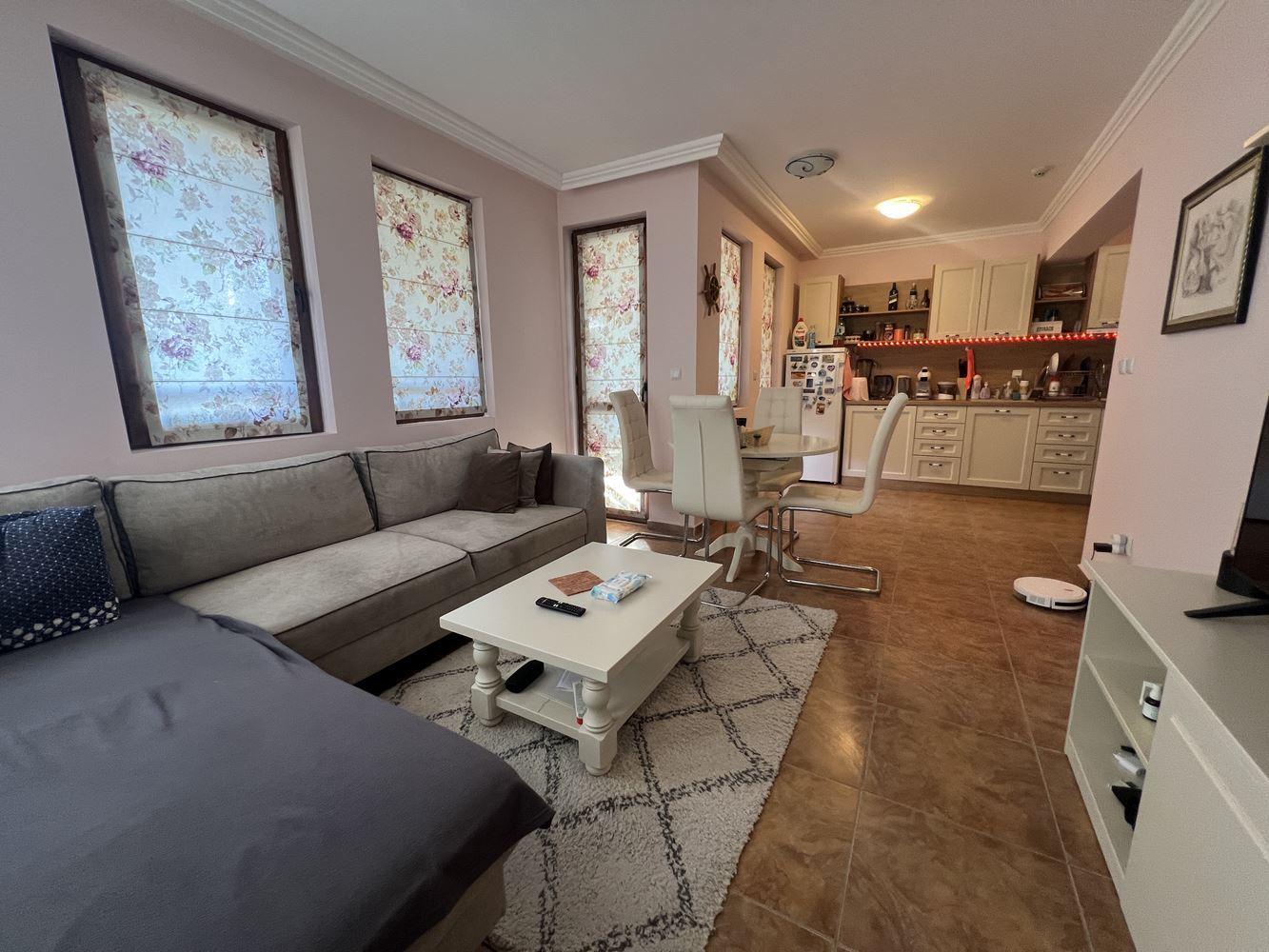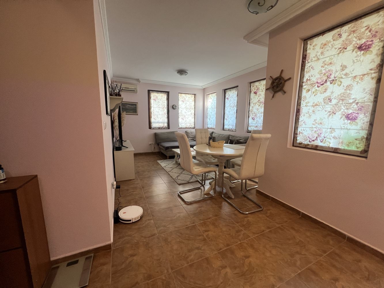 Представяме ви просторен и стилно обзаведен тристаен апартамент, разположен в един от най-престижните комплекси в Свети Влас, само на 300 метра от морето и известното яхтено пристанище. Локацията съчетава спокойствието на морския курорт с близостта до всички удобства, които правят живота край морето комфортен и приятен. Комплексът впечатлява със своята уникална архитектура, вдъхновена от традиционния български стил, където естественият камък, дървените елементи и класическият червен керемиден покрив се съчетават в хармония и създават атмосфера на уют и елегантност. Около сградите са оформени богато озеленени градини, алеи за разходка и множество зони за отдих, които създават усещане за спокойствие и ваканционен комфорт.