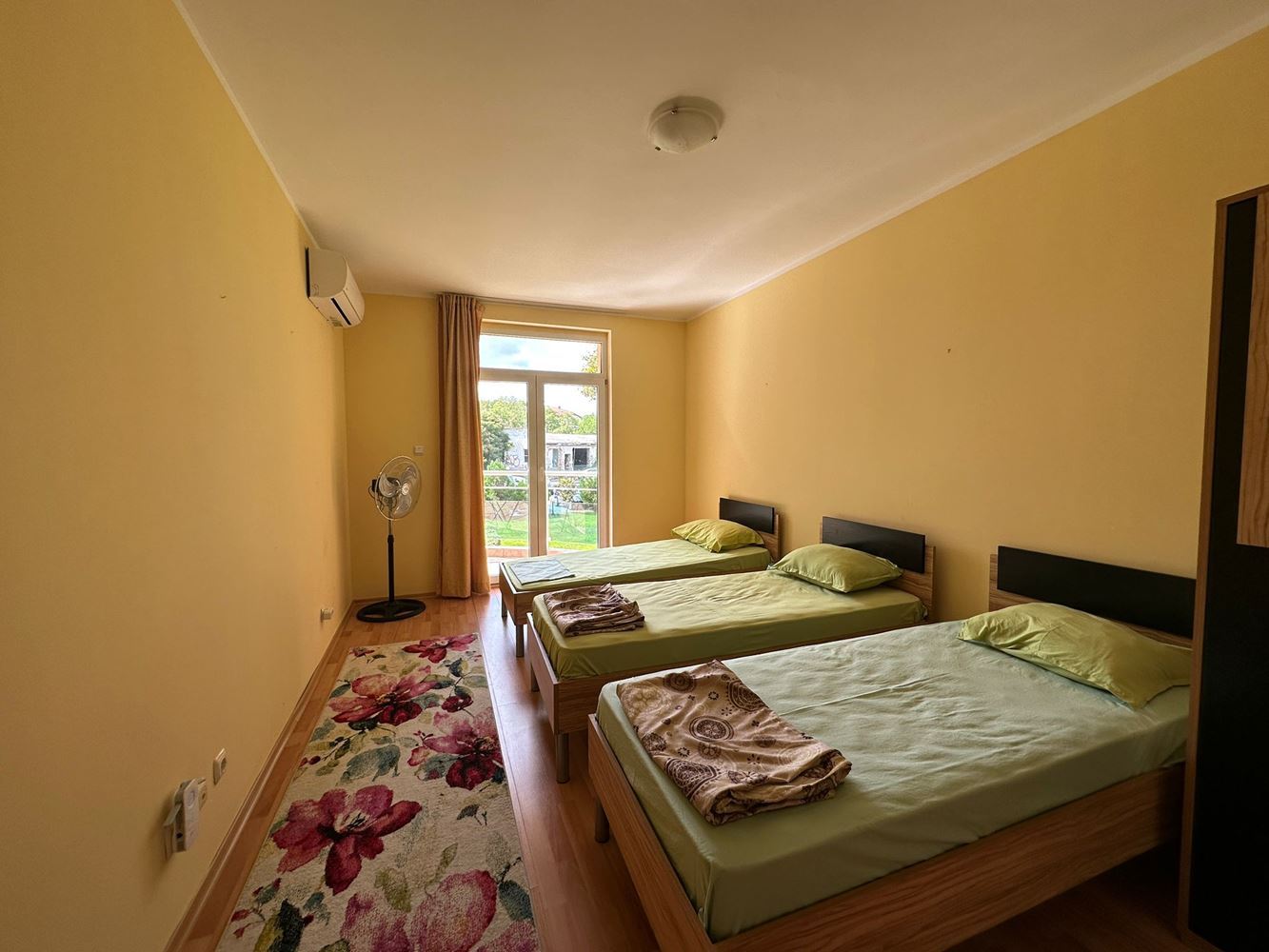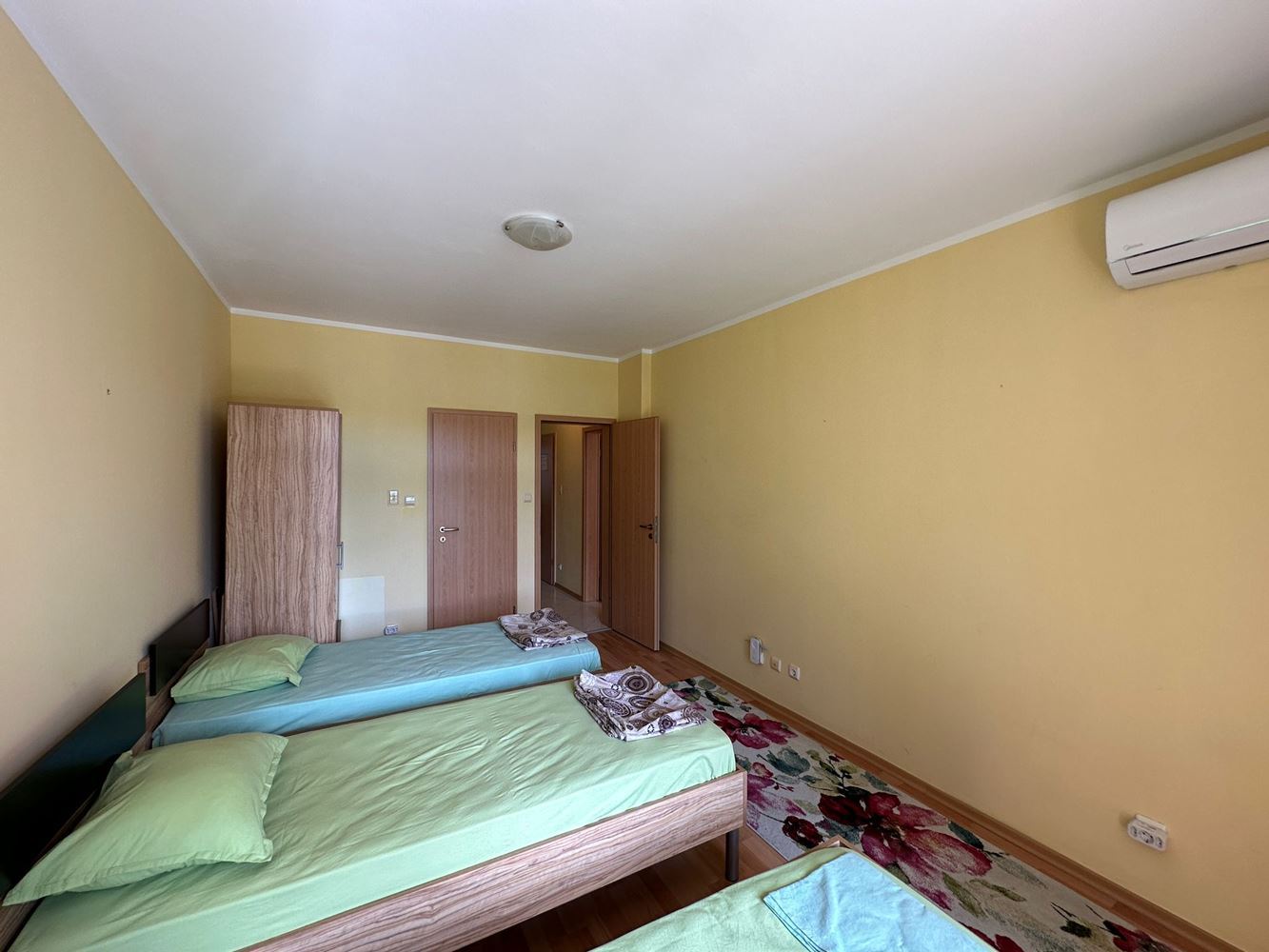 Голям апартамент с две спални само на 50 метра от плажа. Този апартамент е идеален за тези, които искат да се наслаждават на морския пейзаж и да живеят в комфортно жилище с отлична инфраструктура. Жилището се намира в комплекс, който вече е въведен в експлоатация, само на 50 метра от плажа. Това осигурява лесен достъп до плажа и морските разходки. Жилището разполага с жилищна площ, което го прави идеално за семеен живот. Състои се от входно антре, просторна дневна с кухня, две спални, три бани с тоалетна и три балкона. Това осигурява достатъчно пространство за комфортен живот. Предлага се с мебели и уреди, както и с оборудван кухненски бокс. Ще можете да се нанесете веднага и да се насладите на уюта и комфорта. Жилищният комплекс разполага с много удобства, като басейн, зони за слънчеви бани, зелени площи, паркинг, фитнес зала, зала за игри, ресторант и детска площадка. Паркингът в комплекса е охраняем.