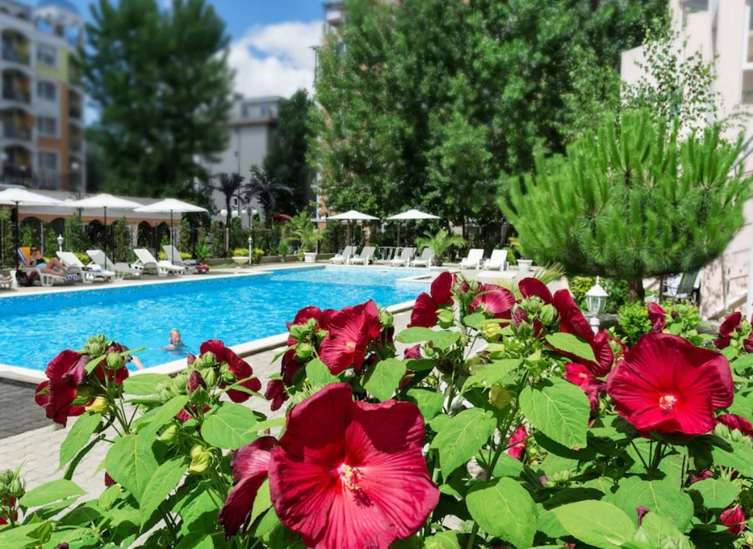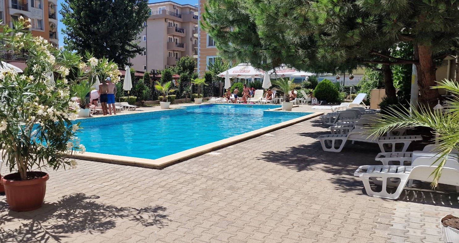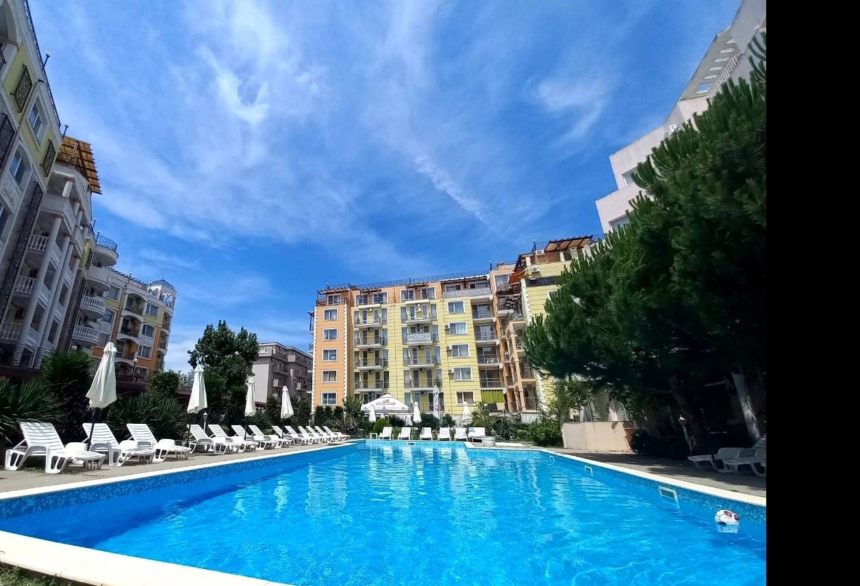Комплексът предлага разнообразни удобства за релакс и забавление – плувен басейн, красиво поддържана градина, детска площадка, магазин, кафе и рецепция, което създава усещане за сигурност и комфорт. Всичко това превръща имота в перфектен избор за семейна почивка, ваканционен дом или доходоносна инвестиция в най-оживената част на курорта.