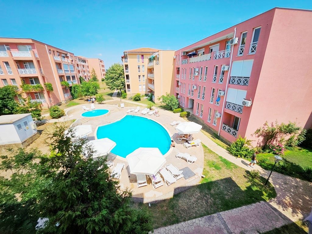 Комплексът, в който се намира имотът, предлага множество удобства за своите жители. Разнообразни плувни басейни са идеалното място за отдих в горещите летни дни, а уютният ресторант с изискана кухня ще задоволи и най-претенциозния вкус. За тези, които обичат активния начин на живот, са на разположение спортни площадки и водни пързалки, а най-малките ще се радват на детските площадки. Освен това, комплексът предлага безплатни парко места, осигурявайки допълнително удобство и спокойствие за вашите превозни средства.