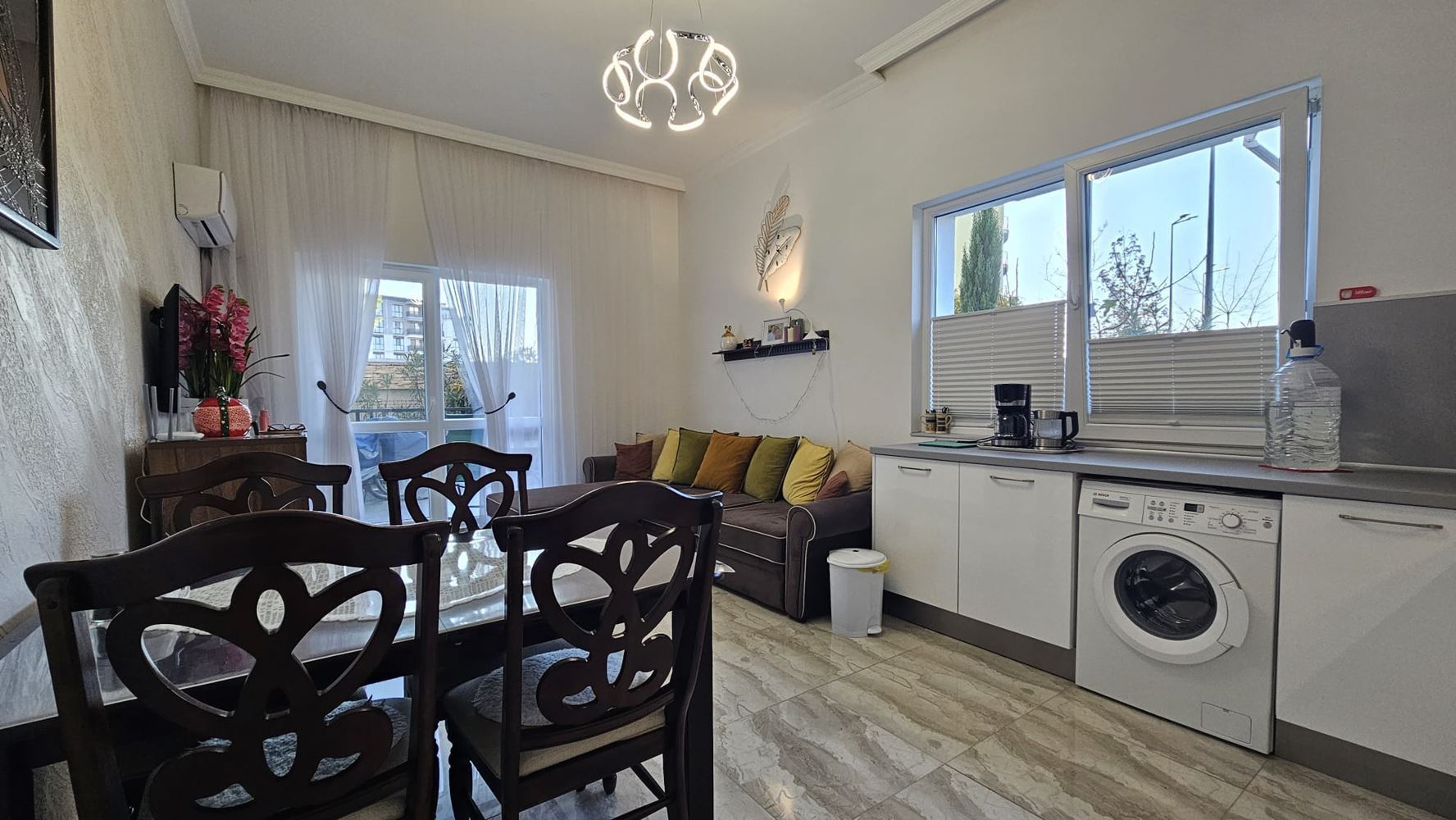 Комплексът е проектиран като затворен тип с отлично поддържана територия, управлявана от професионална фирма. На разположение на собствениците и техните гости са открит басейн, целогодишна охрана, видеонаблюдение и удобен паркинг. Сградата разполага с асансьор, което допълнително улеснява достъпа, въпреки че апартаментът е на партер. Основни параметри: 2 стаи, 1 спалня, 1 баня, 1 балкон/тераса, обща площ 60.10 м2; партер; напълно обзаведен; асансьор в сградата; голяма тераса с директен излаз към двора; басейн, охрана, паркинг и видеонаблюдение в комплекса. Готов за незабавно нанасяне.