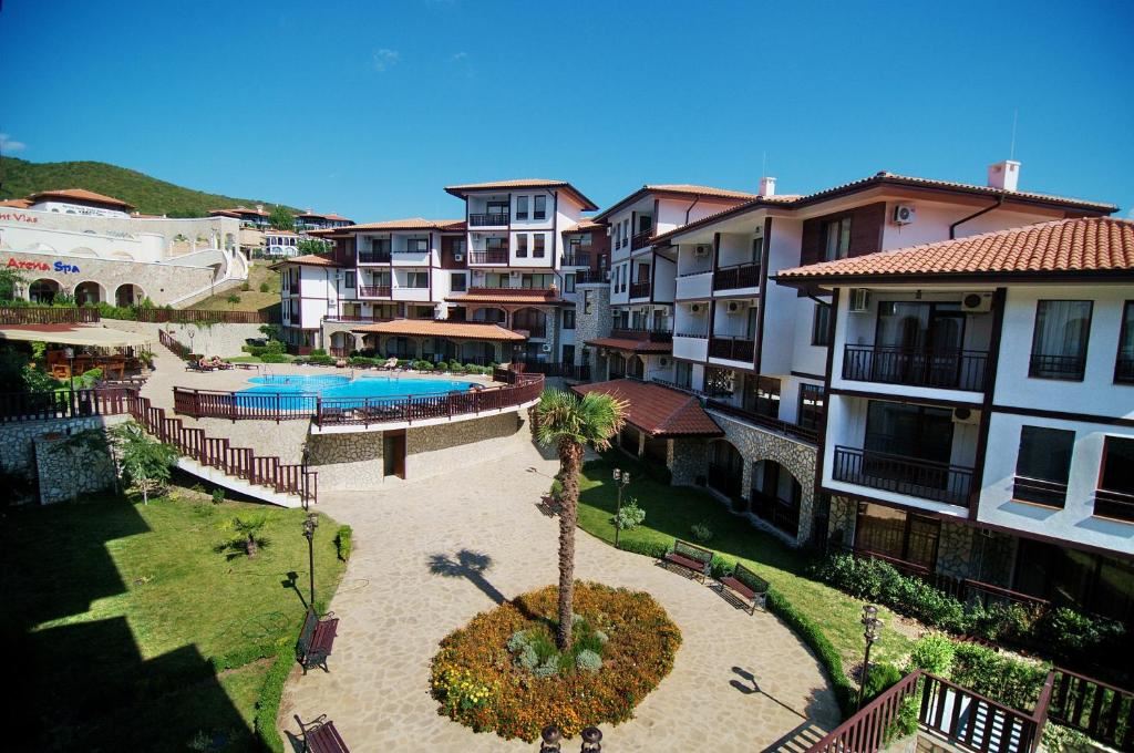Комплексът, в който се намира имотът, впечатлява със своя мащаб, изящество и разнообразие от екстри. Огромни плувни басейни с зони за отдих, ресторанти, плажни барове и кафенета създават атмосфера на истински морски курорт. СПА центърът предоставя възможности за пълноценна релаксация, а детските площадки и просторните алеи за разходки допринасят за удобството на семействата и активния начин на живот. Комплексът разполага още с оживен развлекателен център и амфитеатър, които предлагат разнообразни занимания за свободното време. Осигурен е удобен паркинг и 24-часова охрана, гарантиращи спокойствие и безопасност на всички жители и гости.