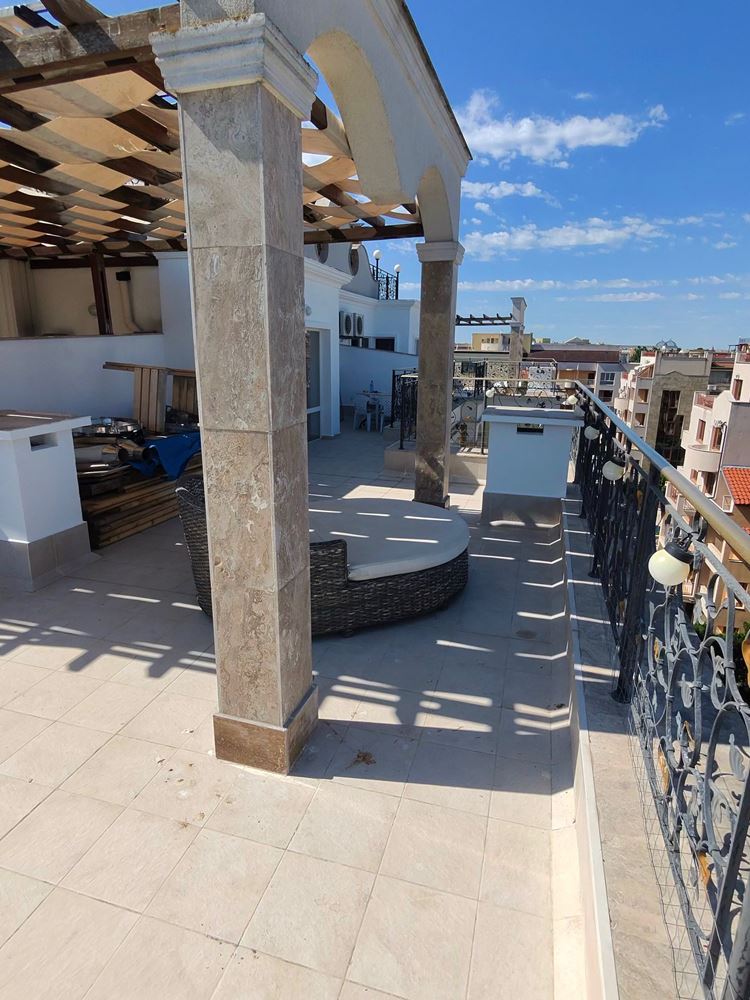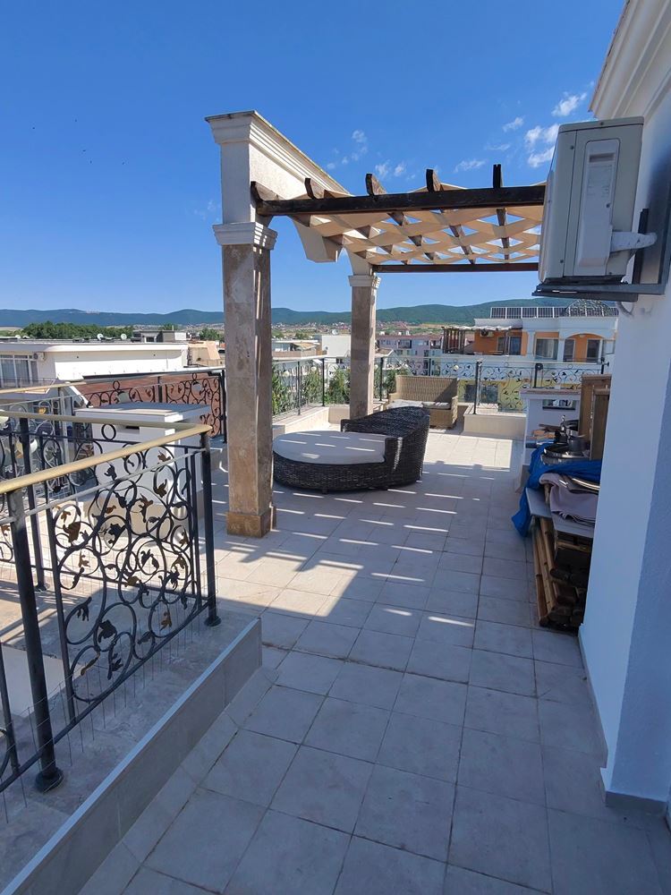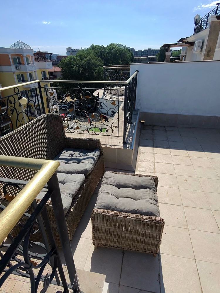 Представяме ви уникален двустаен пентхаус, разположен в сърцето на к.к. Слънчев бряг, който съчетава лукс, комфорт и незабравими панорамни гледки. С обща площ от 100 м2, този изключителен имот е разположен на последния етаж и предлага всичко необходимо за вашето съвършено убежище на брега на морето.Пентхаусът разполага с просторна дневна, която плавно преминава към модерно оборудвана кухня и трапезария. Уютната спалня е идеалното място за спокойствие и отдих. Една баня с луксозно оборудване обслужва жилището, осигурявайки всичко необходимо за вашия комфорт.