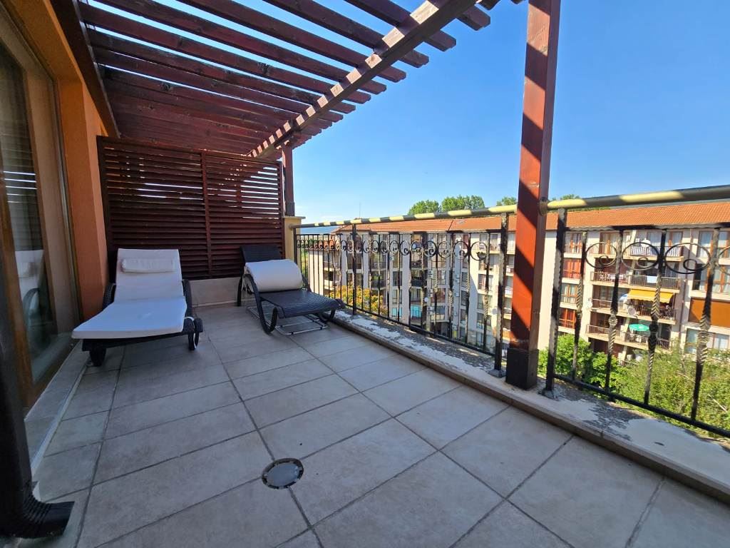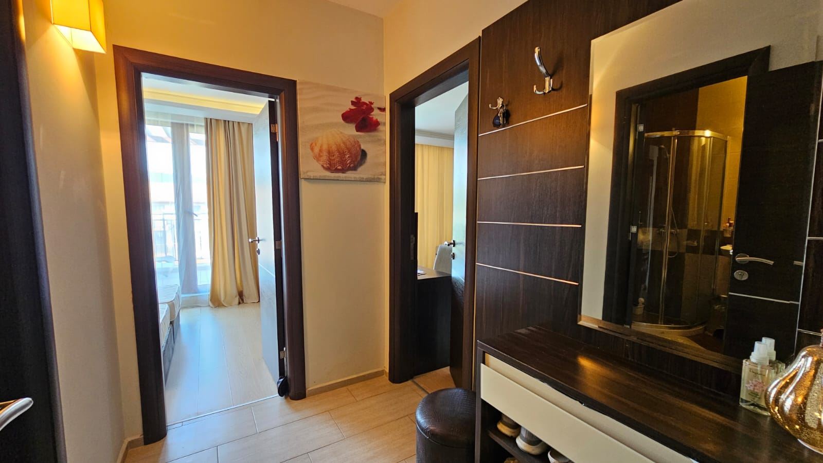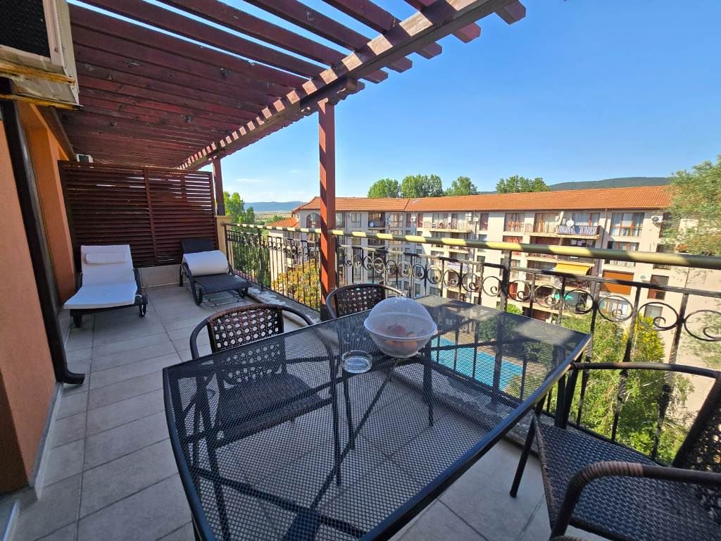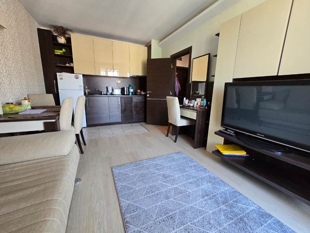Предлагаме ви стилен и уютен двустаен апартамент в един от най-престижните луксозни комплекси в Слънчев бряг. С обща площ от 66 м², този имот, разположен на шести етаж, ви предлага несравними условия за живот и почивка. Апартаментът разполага с просторна и светла дневна, спалня, модерно обзаведена баня и приятен балкон с барбекю, от който се открива впечатляваща гледка към басейна и комплекса. Продава се напълно обзаведен с мебели и оборудване от висок клас, което ви позволява веднага да се насладите на комфорта и удобствата на собствения си дом.