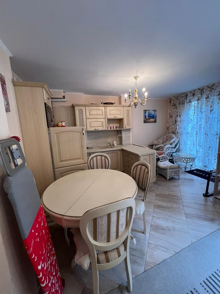 Представяме ви изключителен луксозен мезонет с площ 92 м², разположен на партер и първи жилищен етаж, който съчетава стил, функционалност и възможност за директен достъп до лична градинска част. Този имот е идеален за хора, които търсят комбинация от удобство, комфорт и спокойствие, като същевременно желаят да се насладят на всички предимства на престижен комплекс в тих и зеленина район, само 7 минути от морето. Мезонетът е напълно обзаведен и предлага уютно разпределение на пространството, подходящо както за постоянно живеене, така и за сезонно ползване. Присъствието на собствена градинска част допринася за усещане за свобода и интимност, предоставяйки възможност за релакс на открито и приятни вечери със семейството или приятели.