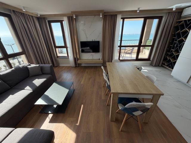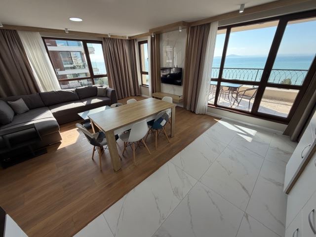 Луксозен тристаен апартамент с фронтална морска гледка в Сарафово