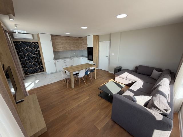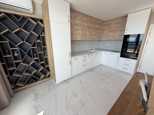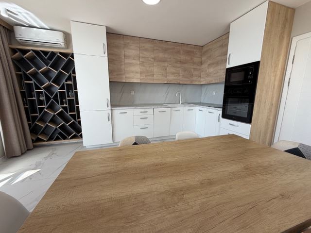 Апартаментът е луксозно обзаведен и оборудван с всичко необходимо за комфортен живот. Жилището разполага с дневна с кухненски кът, две самостоятелни спални, две бани с тоалетна, мокро помещение и тераси с гледка, съчетавайки функционалност и стил. Просторните помещения и внимателно подбраните материали създават усещане за лукс и уют, подходящи както за постоянно живеене, така и за ваканционен имот.
