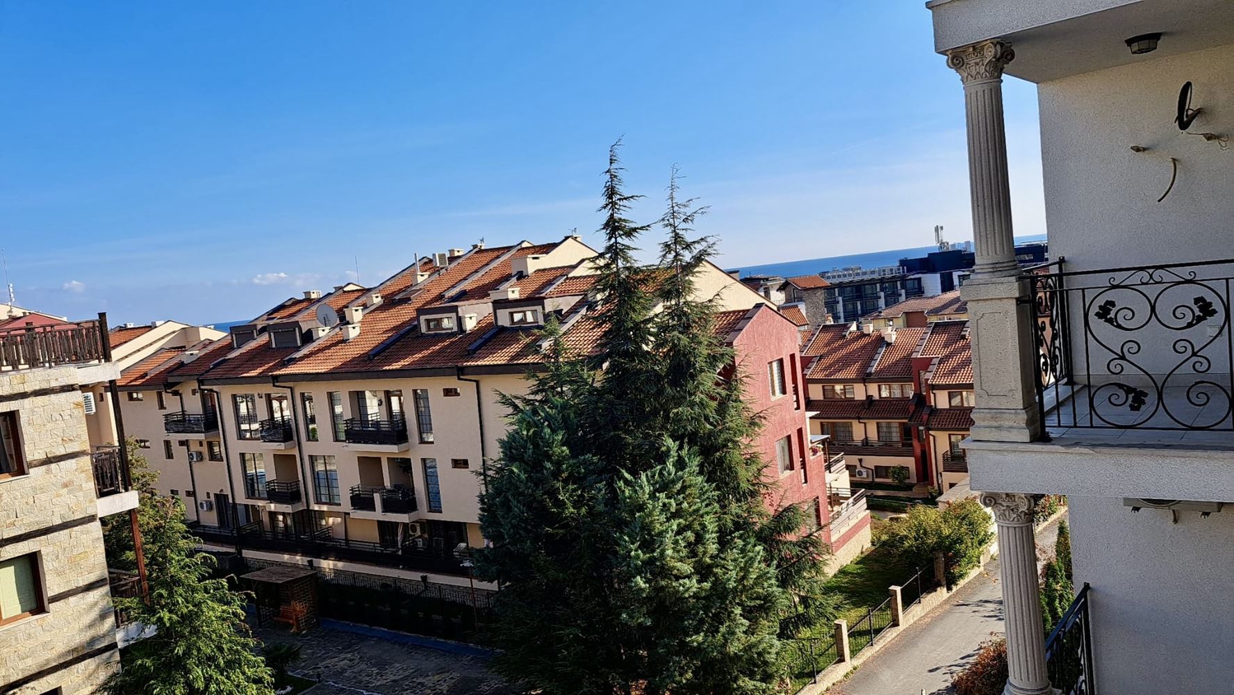 Комплексът впечатлява с високо ниво на сигурност и професионално управление на сградата, което гарантира спокойствие и комфорт за всички обитатели. Наличието на модерен асансьор улеснява придвижването между етажите и добавя допълнителен комфорт за семейства с деца и възрастни хора. Територията е изключително добре поддържана и предлага богато озеленяване, уютни зони за отдих, фонтани, декоративни статуи и буйни дървета, създавайки усещане за хармония и спокойствие. За любителите на активната почивка и релакса, комплексът разполага с просторен открит плувен басейн, идеален за разхлаждане през топлите летни дни.