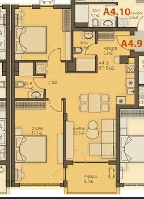 Предлагаме ви просторен апартамент с две спални, разположен на четвърти етаж, с обща площ 103,56 м², в нов, изискан жилищен комплекс в процес на строителство. Жилището е проектирано с модерна и функционална визия, която съчетава простор и удобство. Разпределението включва дневна с кухня, две спални, баня с тоалетна, отделна тоалетна и балкон, което осигурява максимален комфорт за семейно живеене или за престой с приятели. Апартаментът се предлага напълно завършен, което позволява на новите собственици да се насладят на жилището без допълнителни усилия и инвестиции в довършителни работи.
