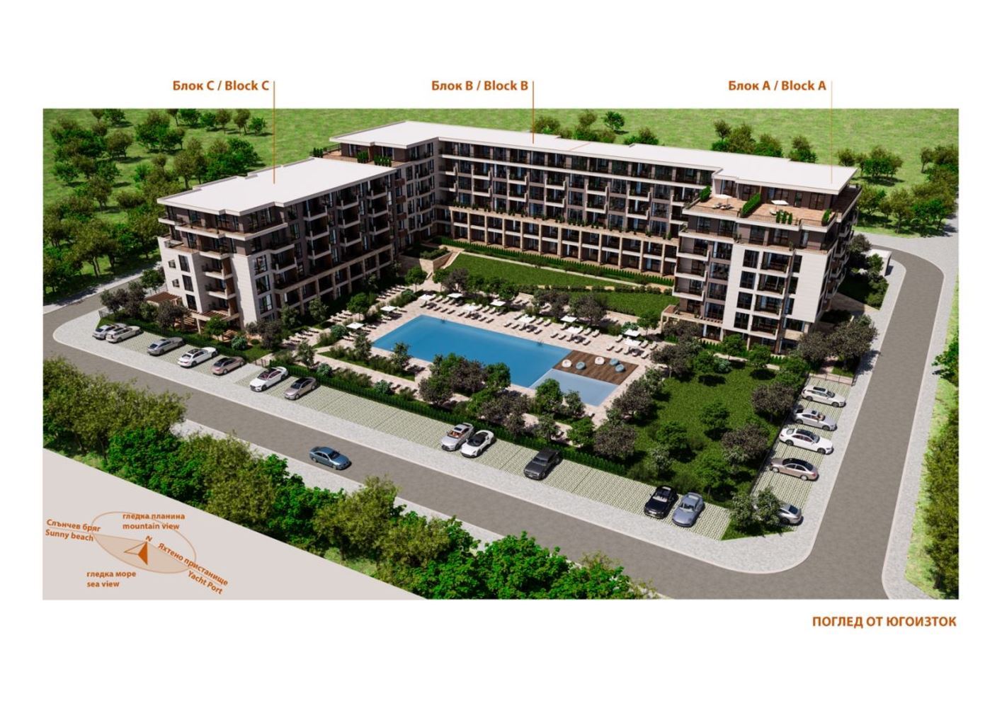 Комплексът е разположен в един от най-предпочитаните черноморски курорти – град Свети Влас, в подножието на Стара планина. Това място предлага уникална комбинация от морски и планински климат, спокойствие и отлична инфраструктура, която прави живота тук удобен и приятен през цялата година. Благодарение на удобните транспортни връзки, достъпът до плажа, центъра и съседните курорти е лесен и бърз, както с кола, така и пеша или с велосипед, което допълнително повишава удобството и стойността на имота.