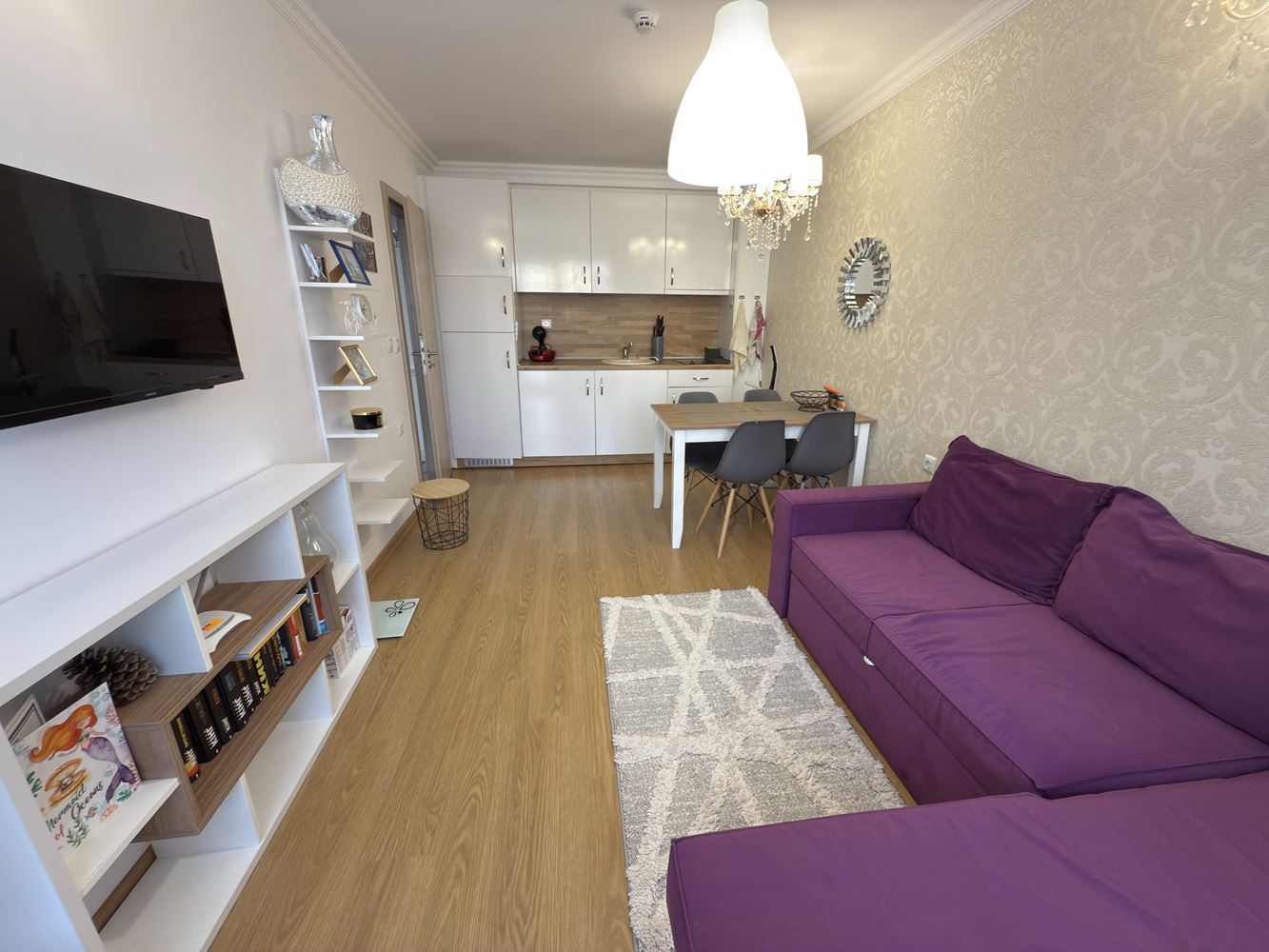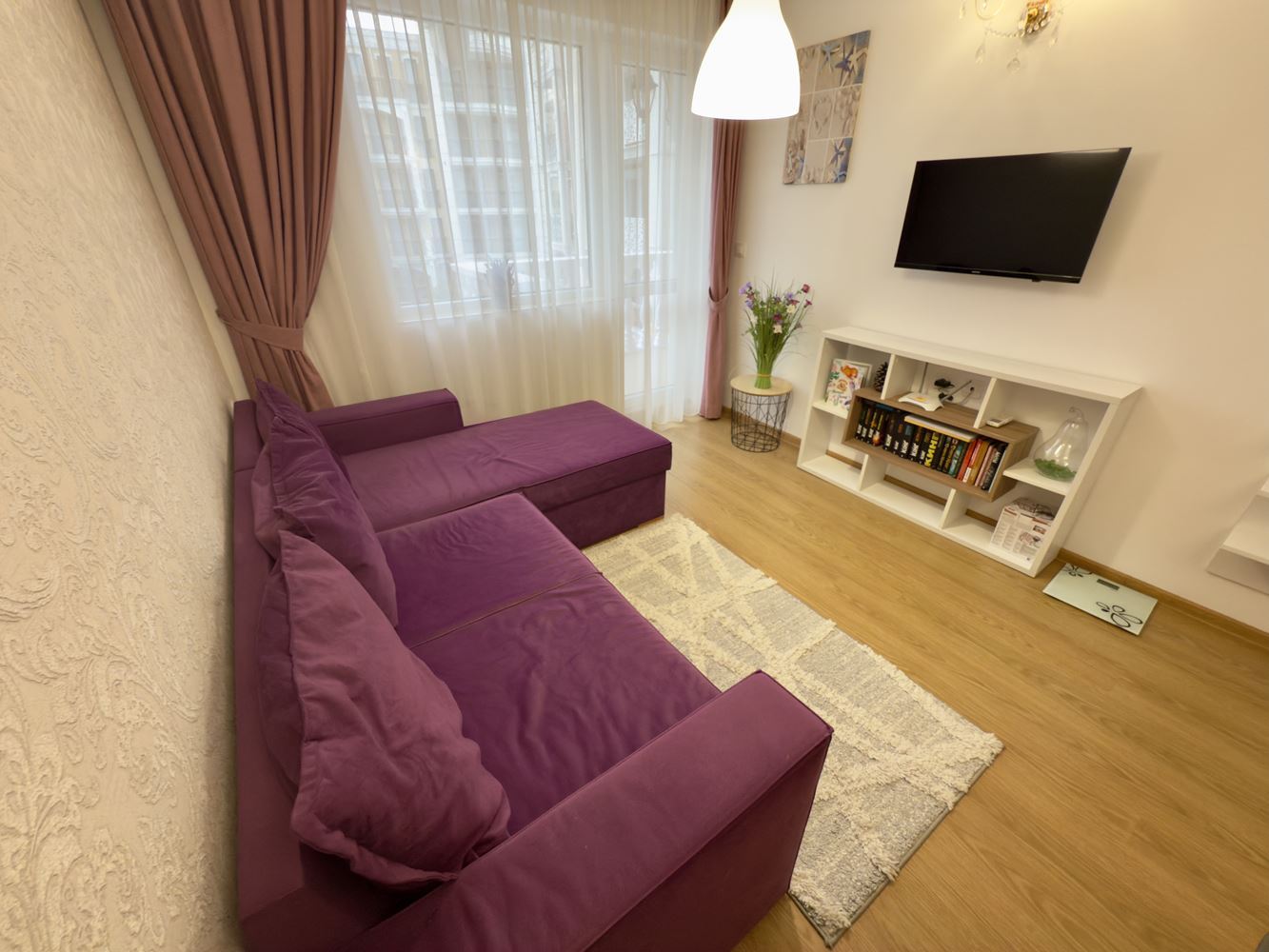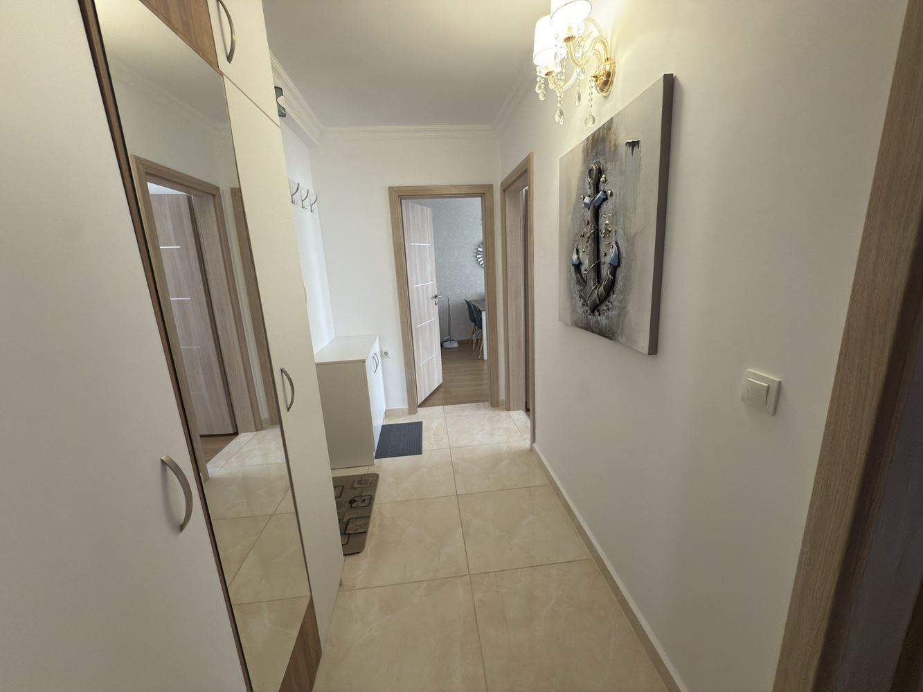 Жилището включва просторна всекидневна с кухненски бокс и две самостоятелни спални, което осигурява комфорт и уединение за всички членове на домакинството. Просторните помещения са светли и добре обзаведени, създавайки уютна атмосфера, а балконът позволява да се насладите на гледката и свежия въздух.
