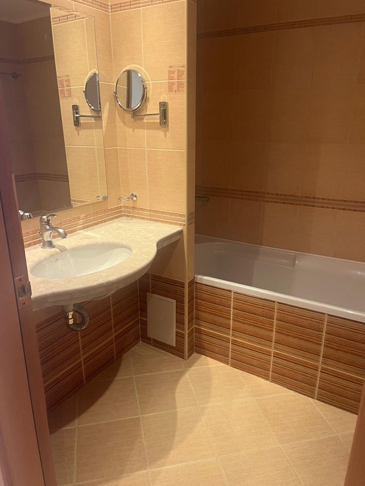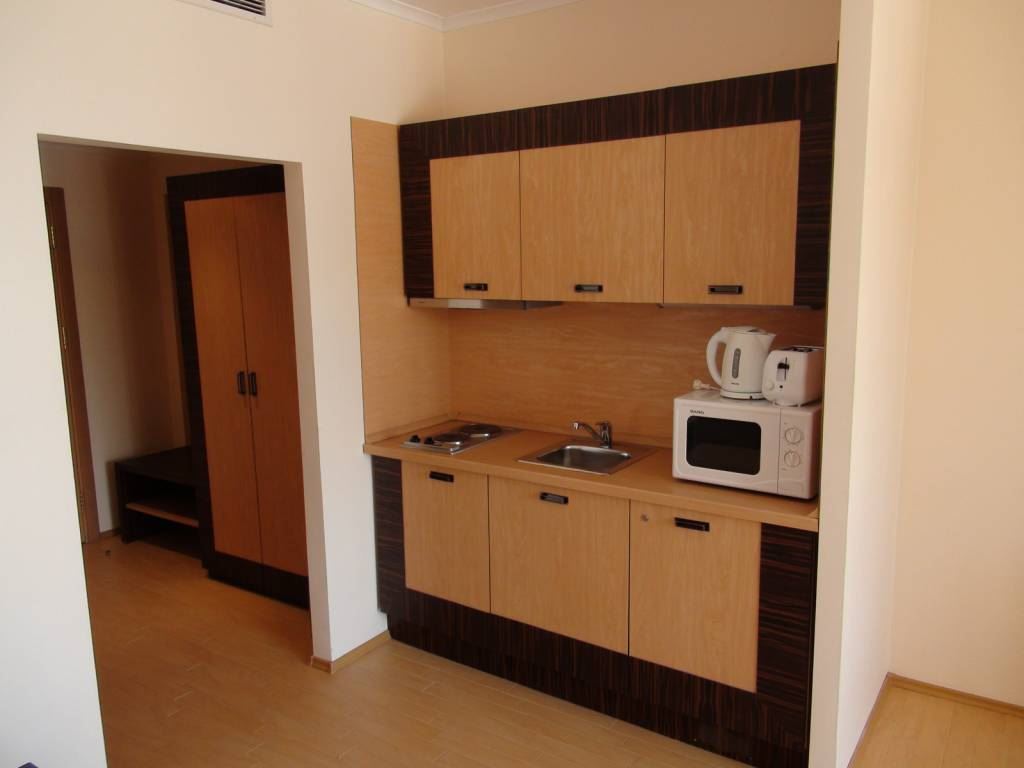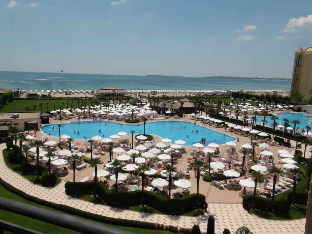 Комплексът, в който се намира имотът, е сред най-престижните и мащабни в Слънчев бряг и предлага богат избор от първокласни удобства, създадени да отговорят на всички нужди за пълноценна почивка, спорт, развлечения и бизнес. Просторната градина пред сградата е красиво озеленена и разполага с два големи басейна, бар при басейна и отделен детски басейн, които създават курортна атмосфера през целия сезон.