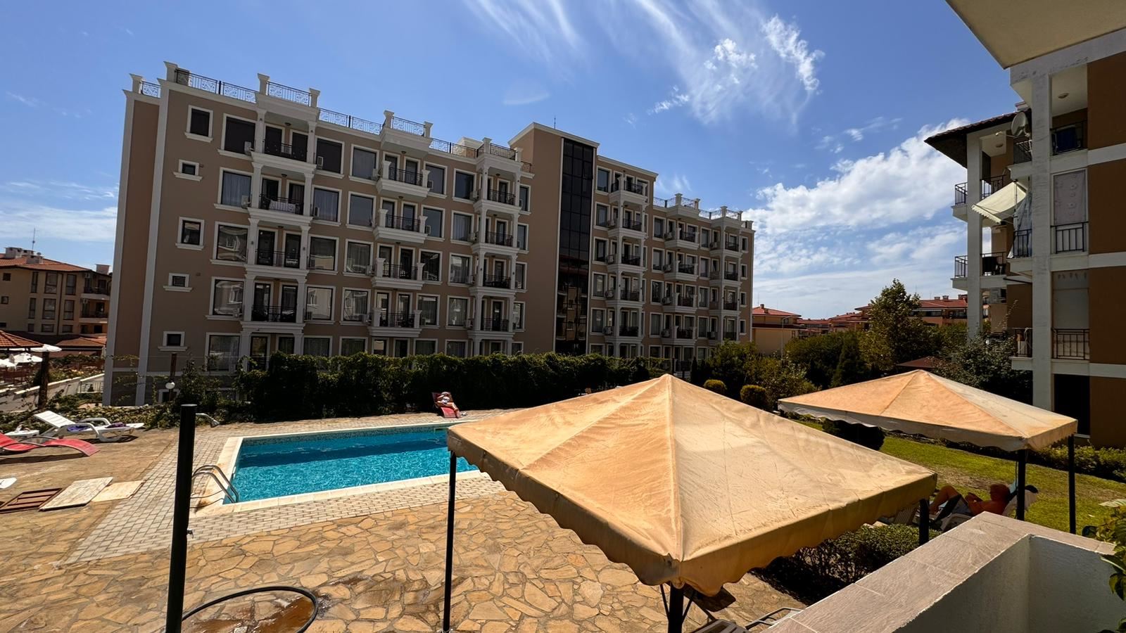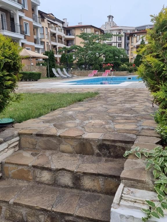 Малък двустаен апартамент в хубав комплекс с гледка към басейна в Свети Влас
