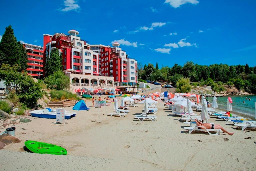 Комплексът предлага разнообразие от удобства, които ще направят вашия престой незабравим. На ваше разположение е оборудван плаж с шезлонги, където можете да се отпуснете и да се насладите на слънчевите лъчи. Детската площадка предлага безопасно и забавно място за игра на вашите деца. За любителите на кулинарията и социалните събития функционират ресторант, кафенета и барове, които предлагат разнообразни вкусотии и напитки.