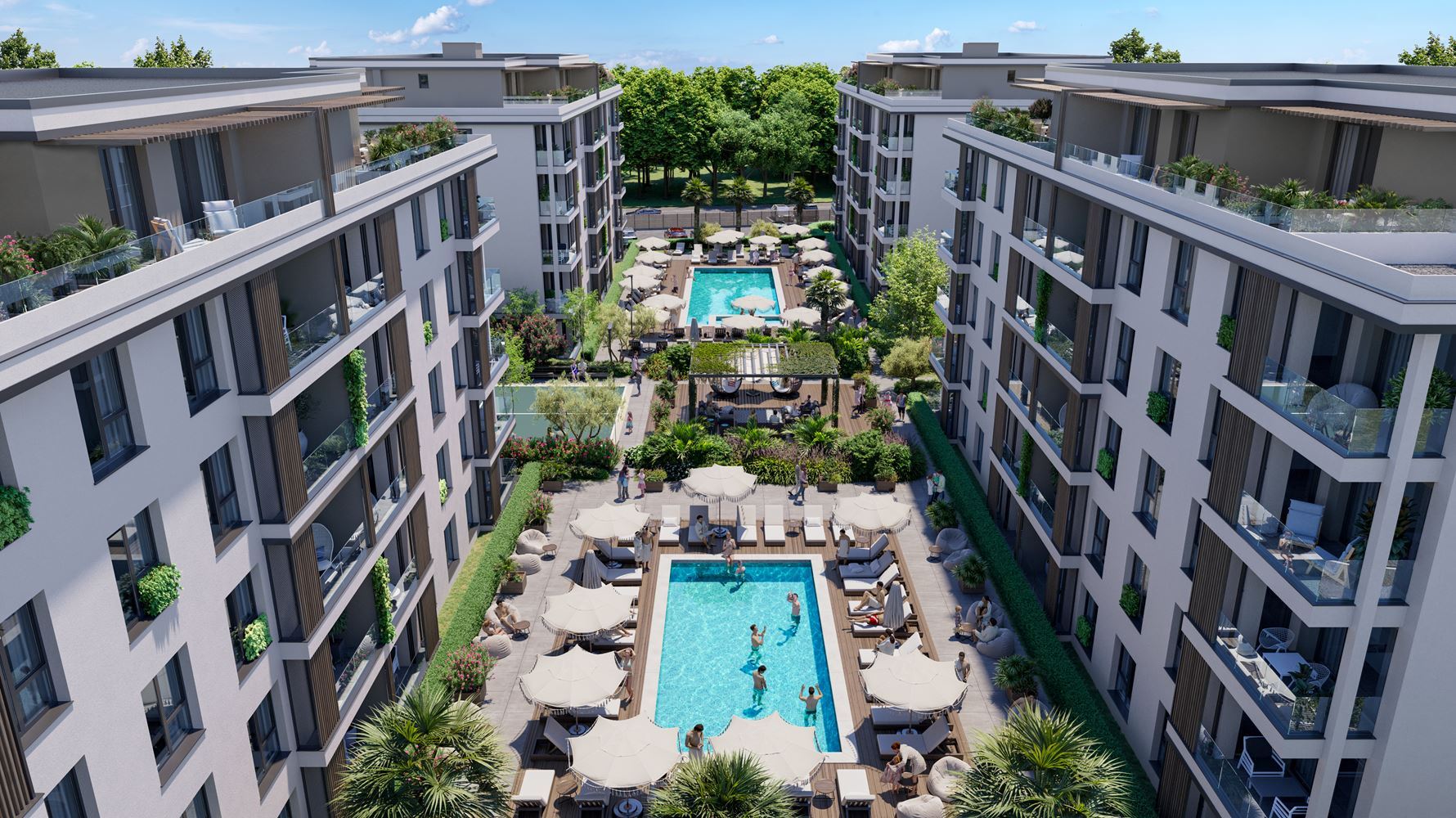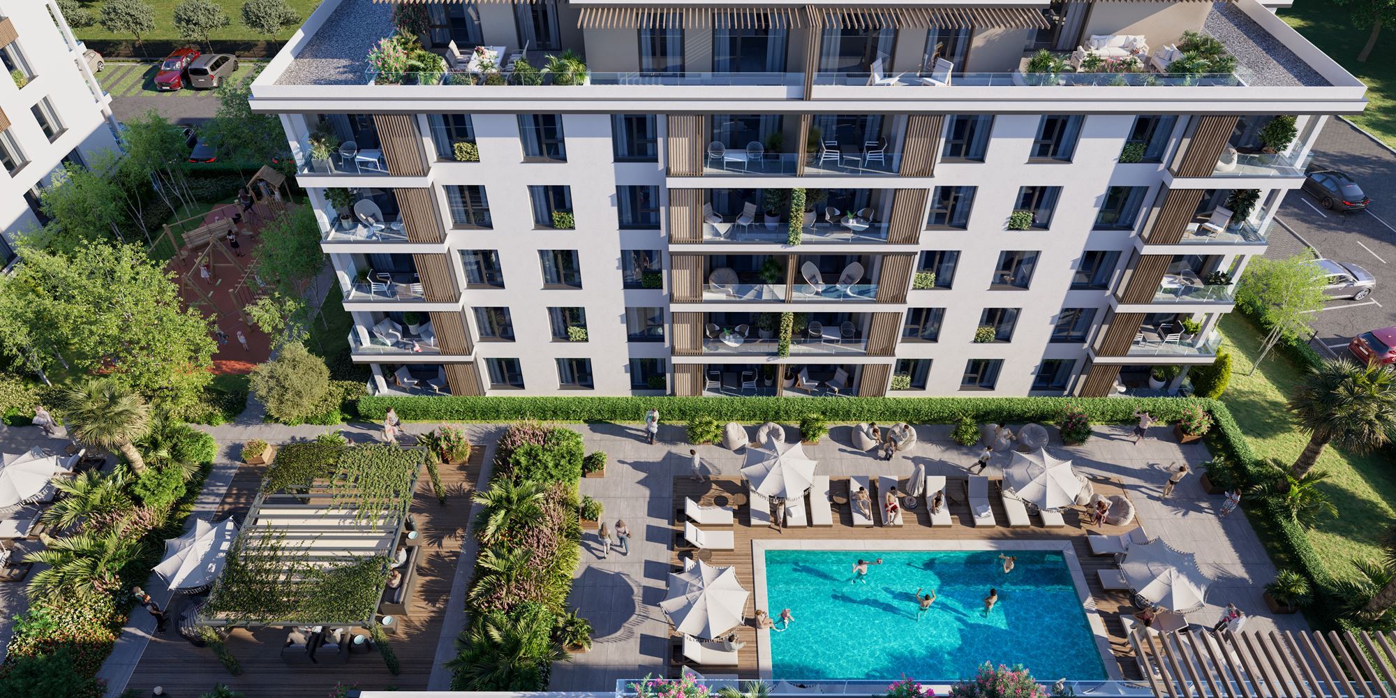 Комплексът се състои от четири елегантни сгради с общо около 200 апартамента, проектирани с внимание към функционалността, светлината и усещането за простор. В него се предлагат апартаменти с една или две спални, с една или две бани, както и пентхауси, като всички жилища се предават напълно завършени „до ключ“, което позволява бързо и безпроблемно нанасяне или отдаване под наем.