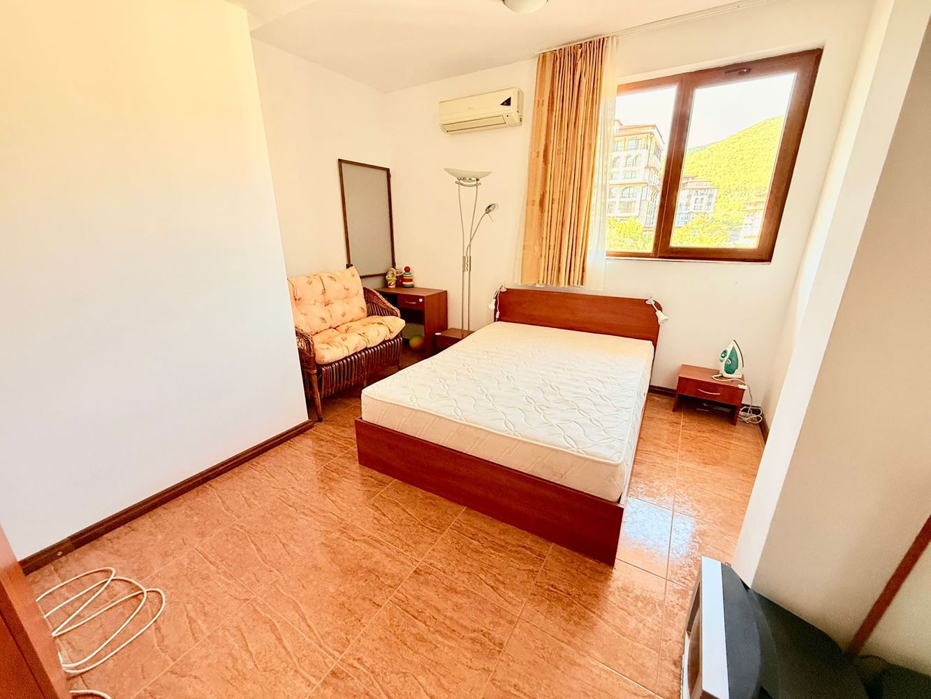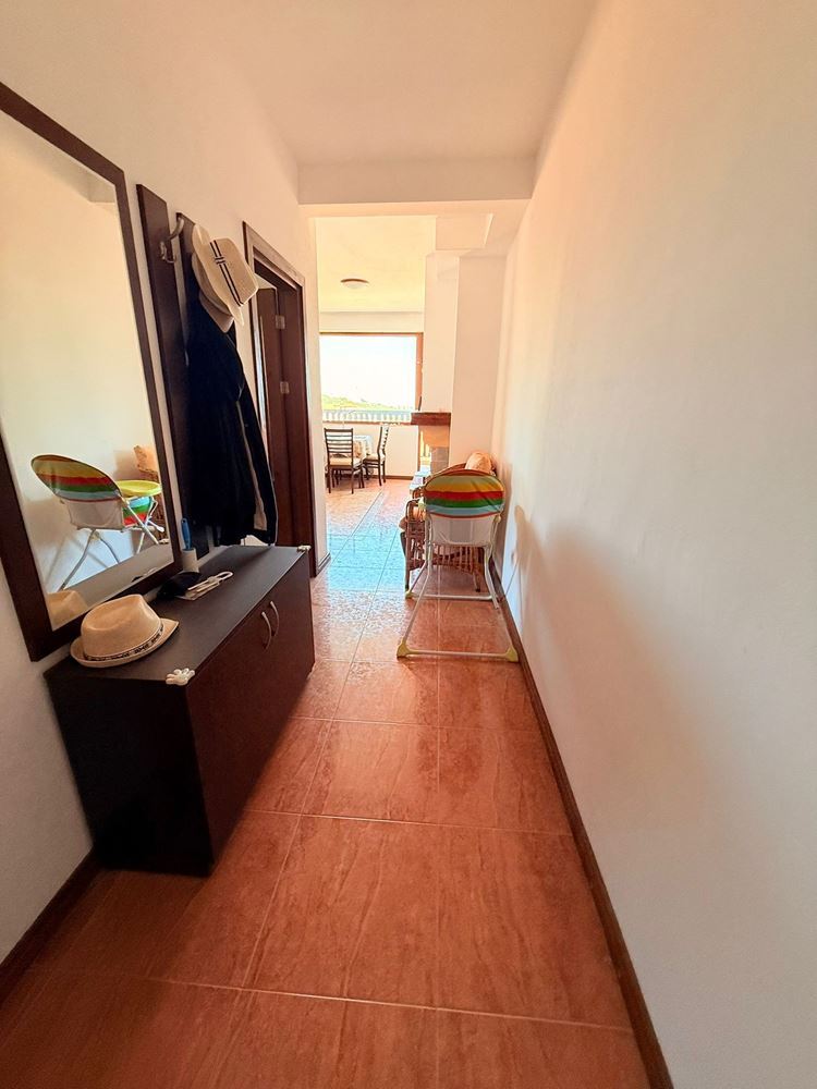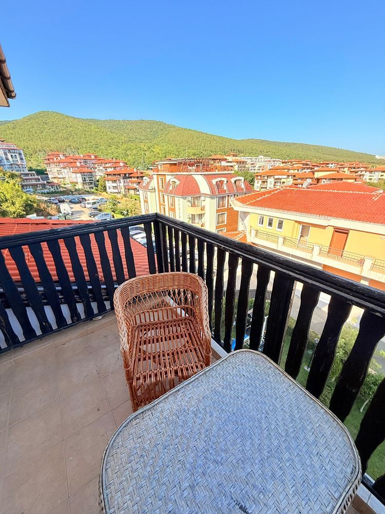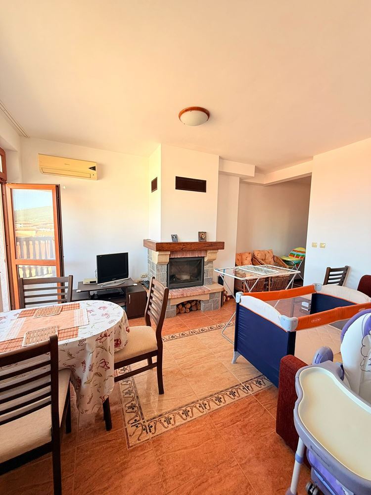 Жилището се състои от отделна спалня, просторна дневна с кухненски бокс и баня с тоалетна. Безспорно предимство на жилището е терасата с гледка към територия на комплекса, където можете да се насладите на сутрешното си кафе в уютна атмосфера. Имотът е в отлично състояние и е готов за целогодишно живеене или отдаване под наем, което го прави отлична възможност за инвестиция.