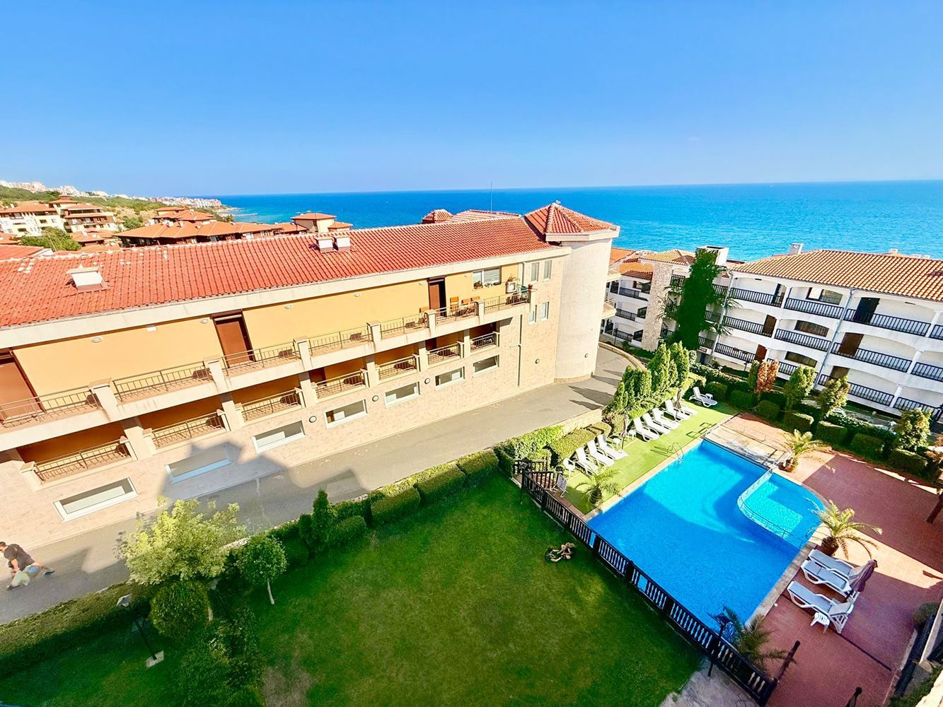 Разположен в централната част на Свети Влас, в престижен район до яхтеното пристанище, този прекрасен комплекс предлага широка гама от удобства за жителите. Инфраструктурата на комплекса включва добре поддържана охраняема зона от затворен тип и с контролиран достъп, плувен басейн за възрастни и деца, гурме ресторант, рецепция, озеленени площи и паркинг. Всичко това осигурява на жителите комфортна и безгрижна почивка или пребиваване в красивия град Свети Влас.